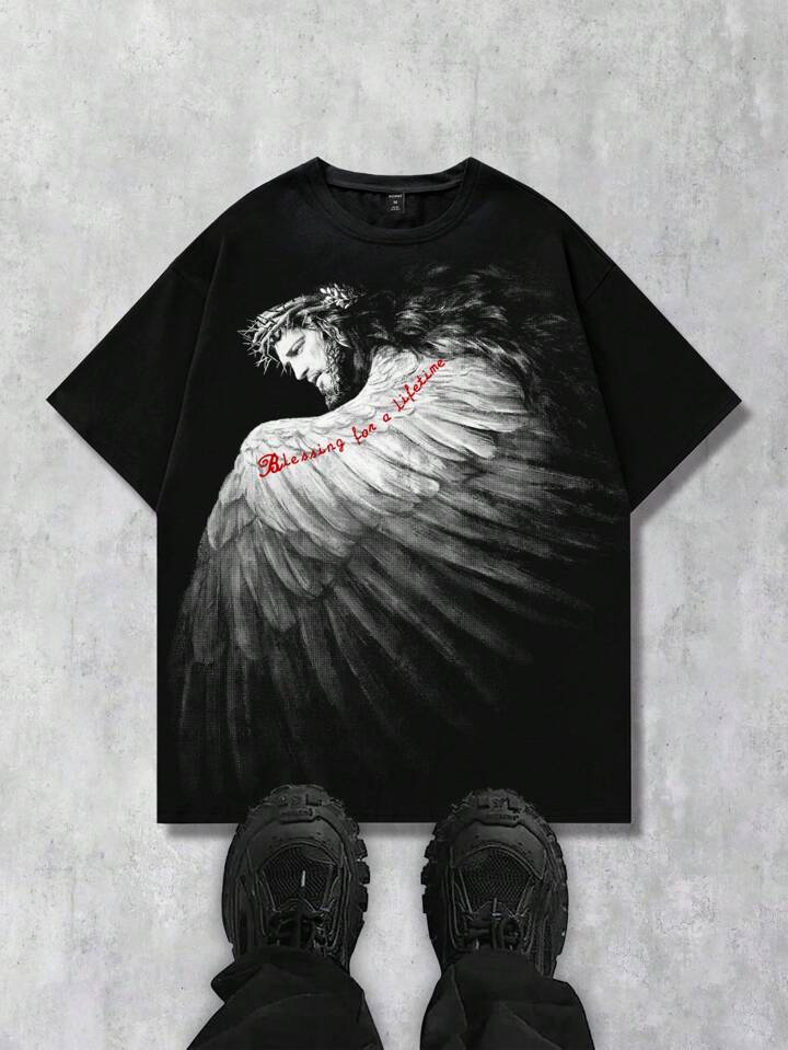 Goth Top décontracté à col ras-du-cou et manches courtes avec imprimé de personnage, pour un port quotidien, Halloween