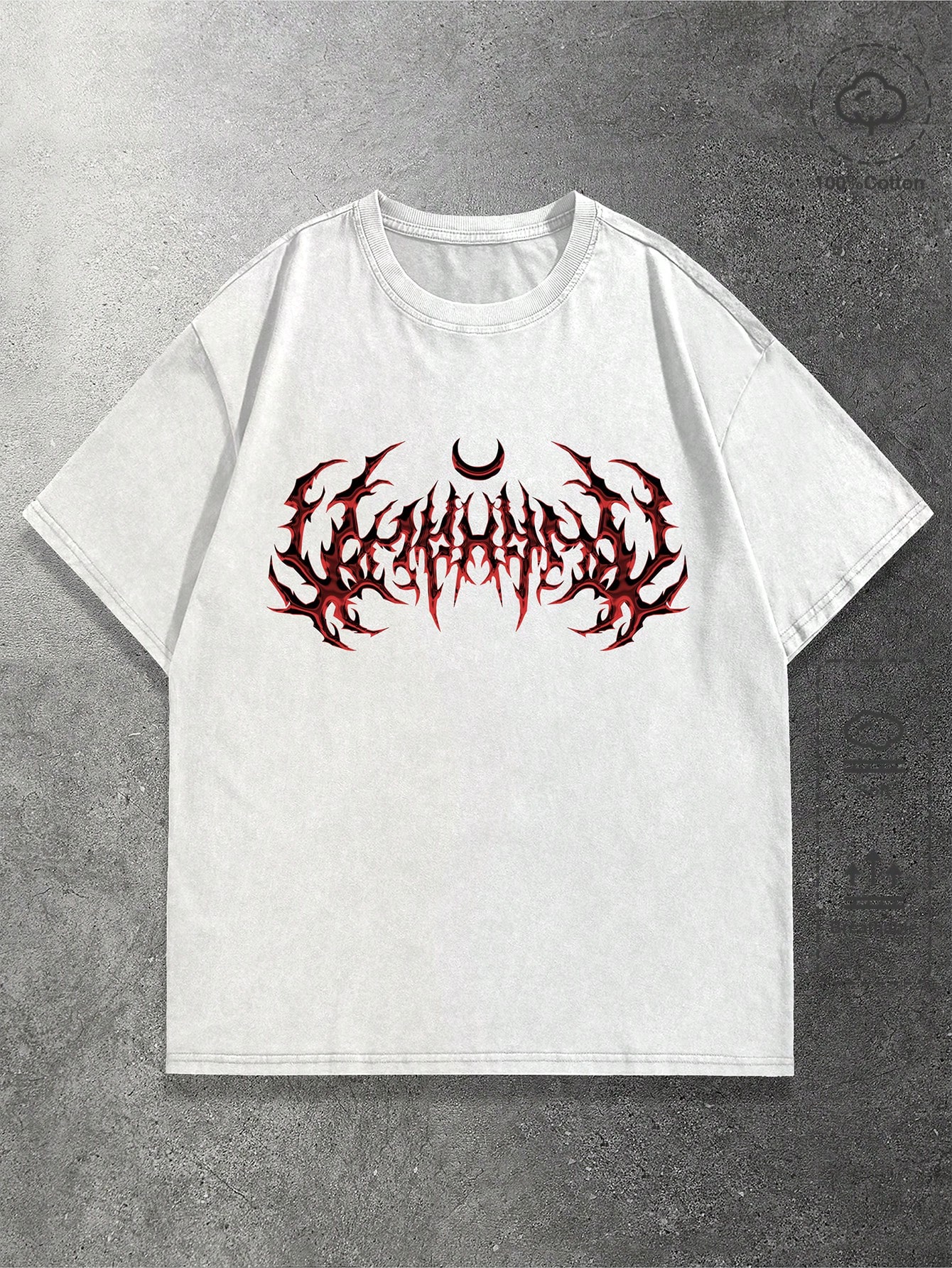 T-shirt décontracté à col rond à manches courtes avec imprimé gothique pour hommes