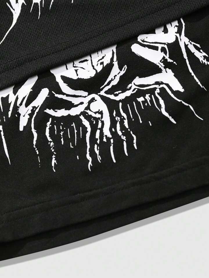 Short deux-en-un imprimé gothique respirant pour hommes, pour un port casual quotidien au printemps et en été, école