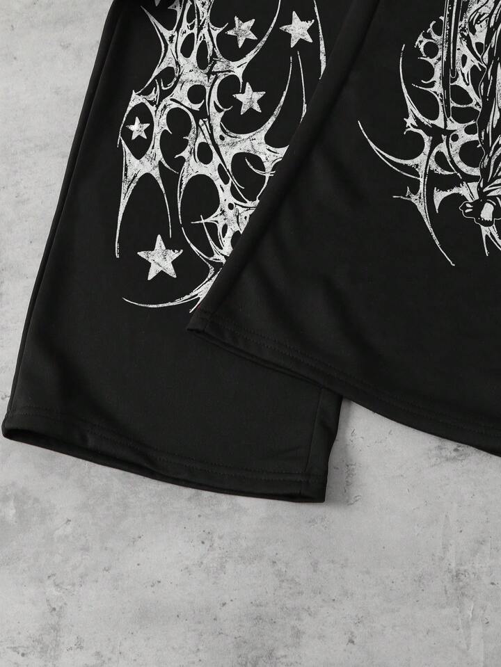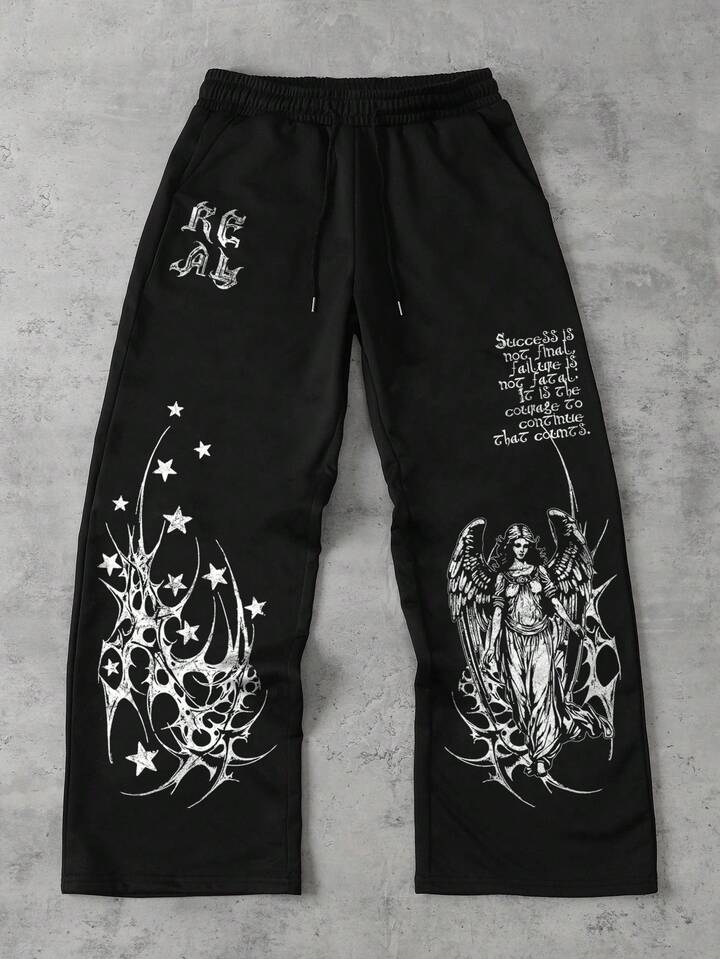 Goth Pantalon de jogging décontracté à taille élastique avec imprimé slogan et étoile, jambes larges pour hommes