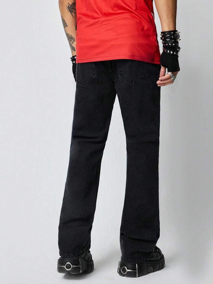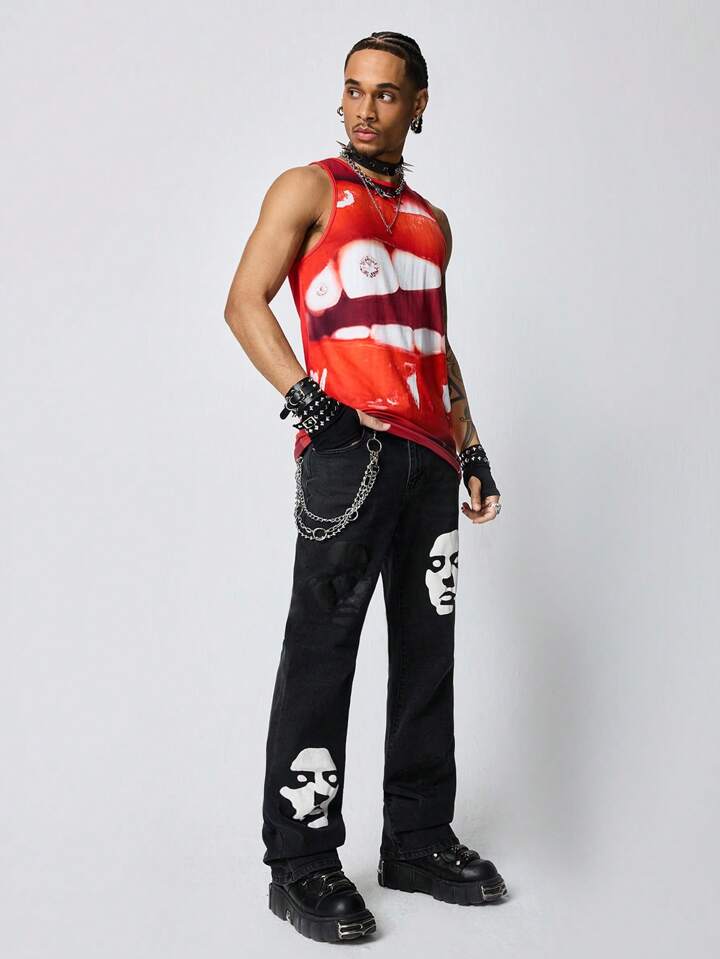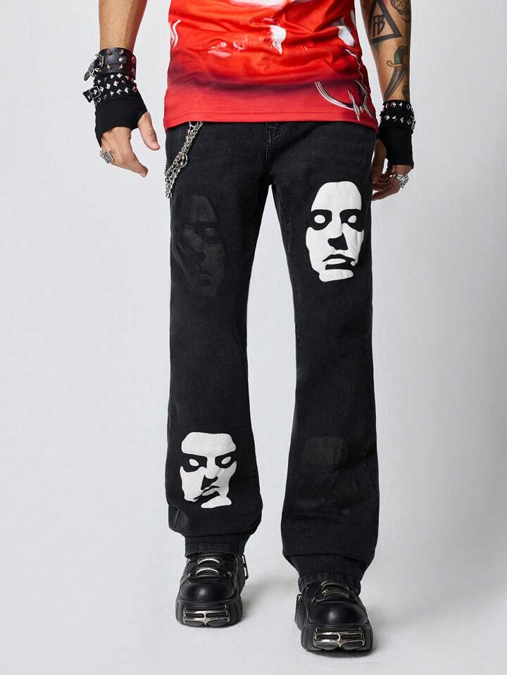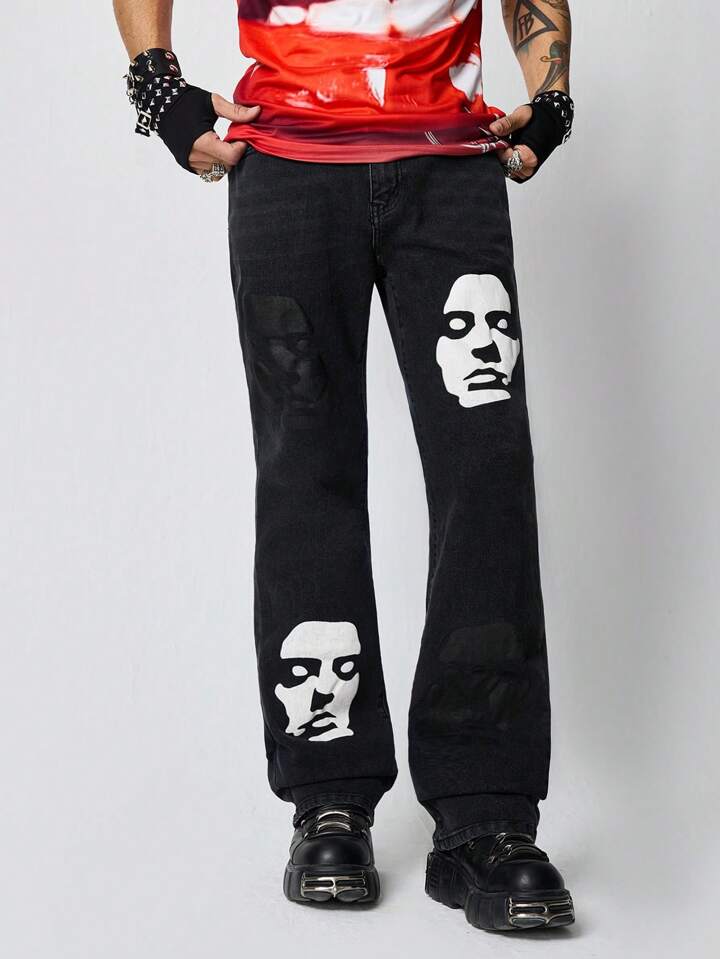 Grunge Punk Jeans droits pour hommes avec imprimé graphique décontracté sur le visage