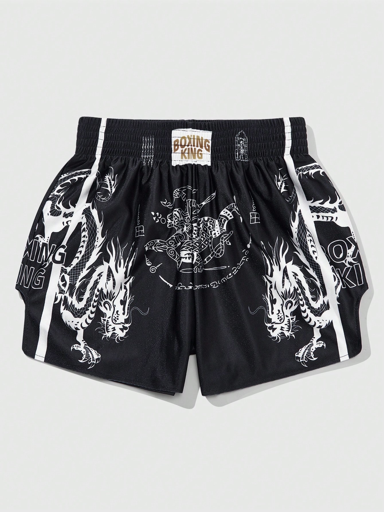 Prep Short de boxe ample à taille élastique avec imprimé gothique lettres et dragon pour hommes, Halloween