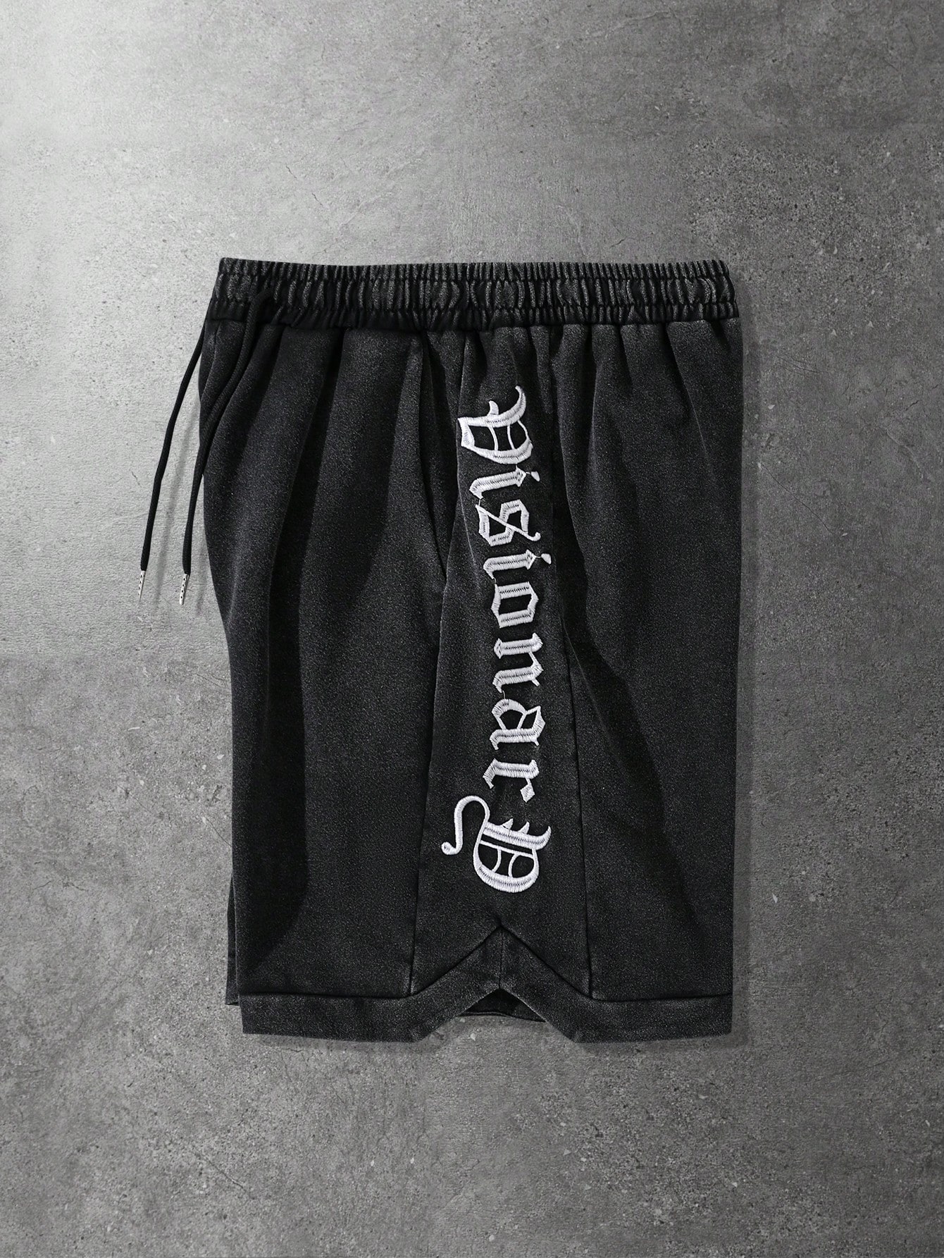Short décontracté lavé à taille élastique avec motif de broderie de lettres pour hommes