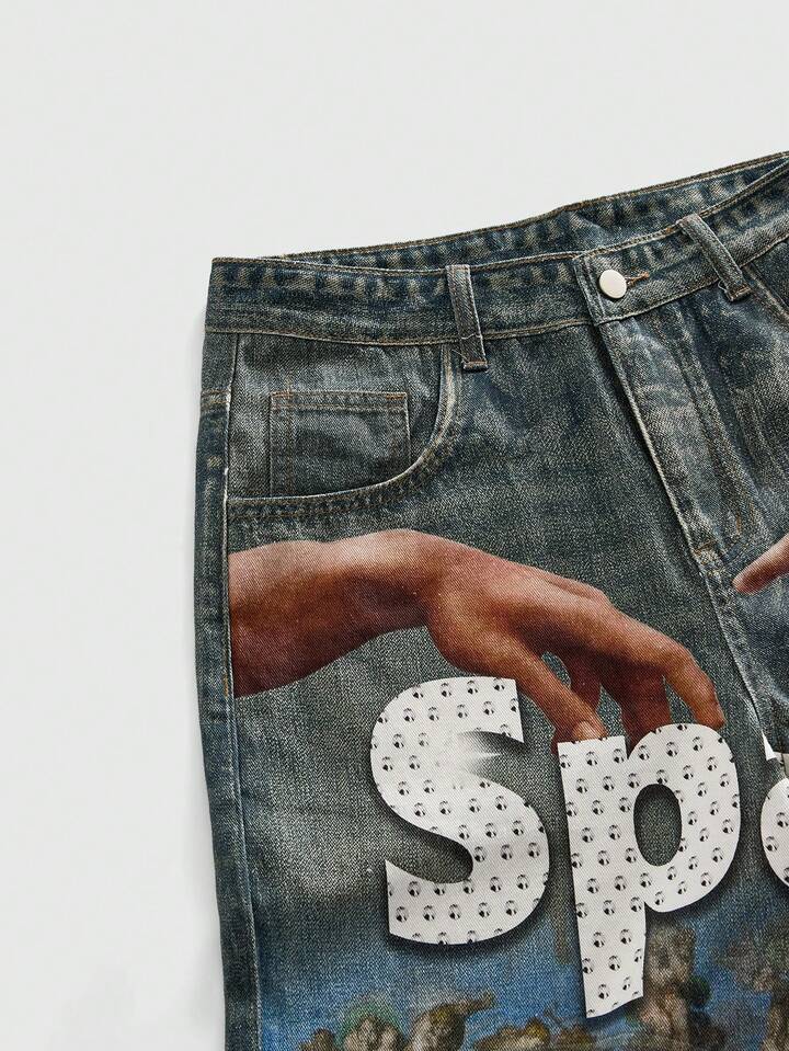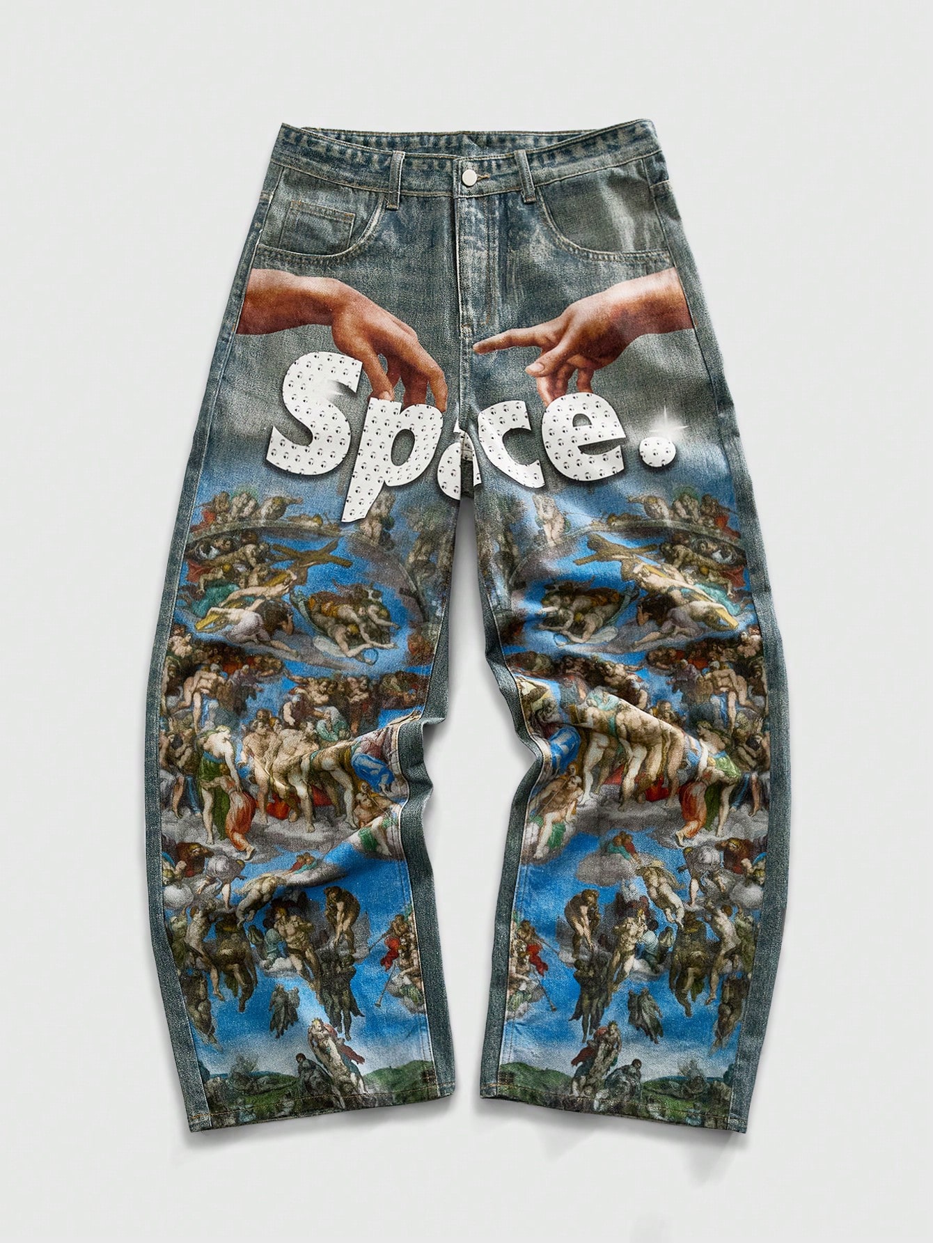 Jeans amples et décontractés à jambe large avec motif de geste de lettre pour hommes