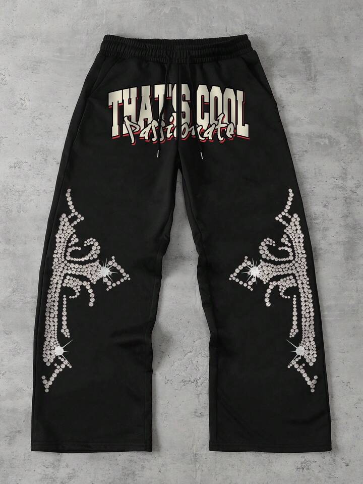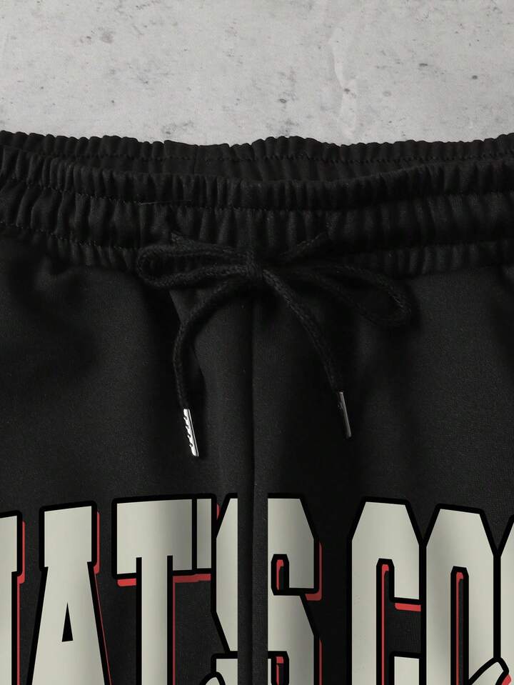 Pantalon de survêtement casual ample avec cordon de serrage à la taille et poches, imprimé lettres pour hommes