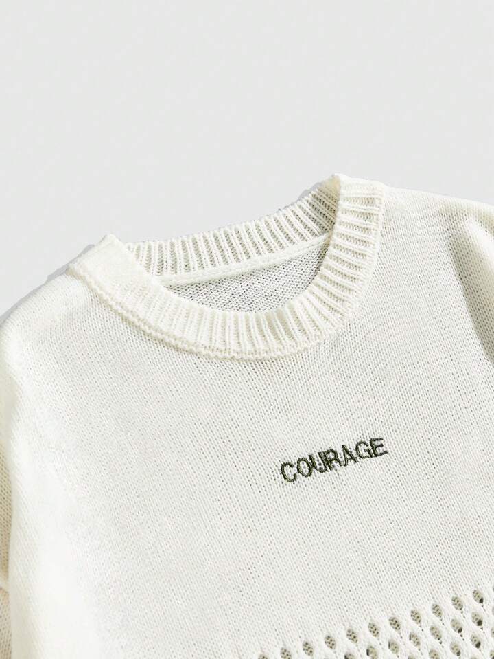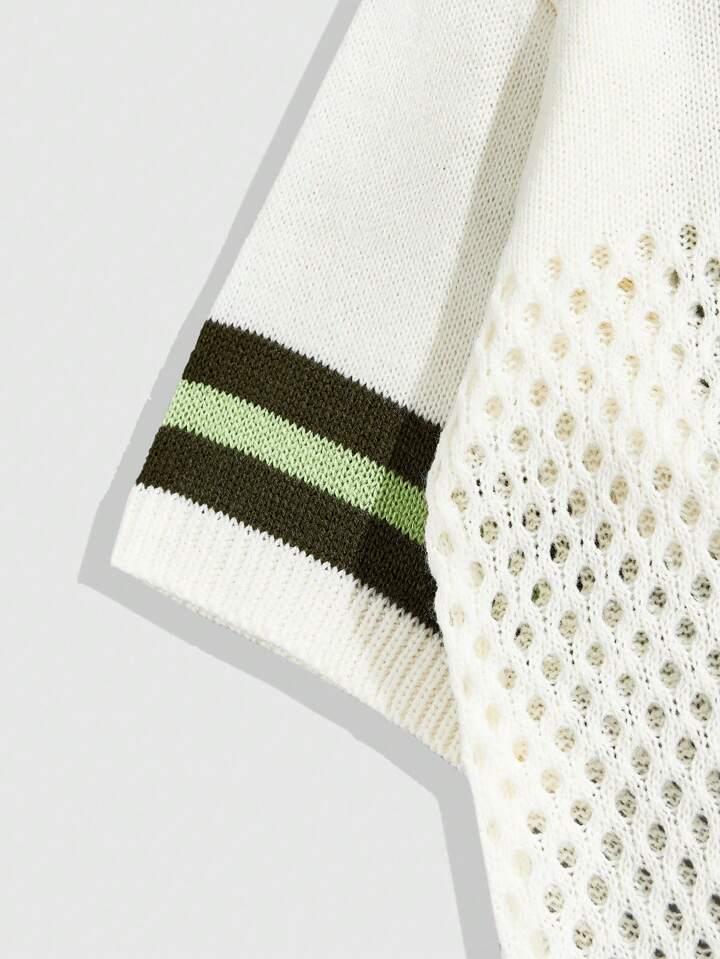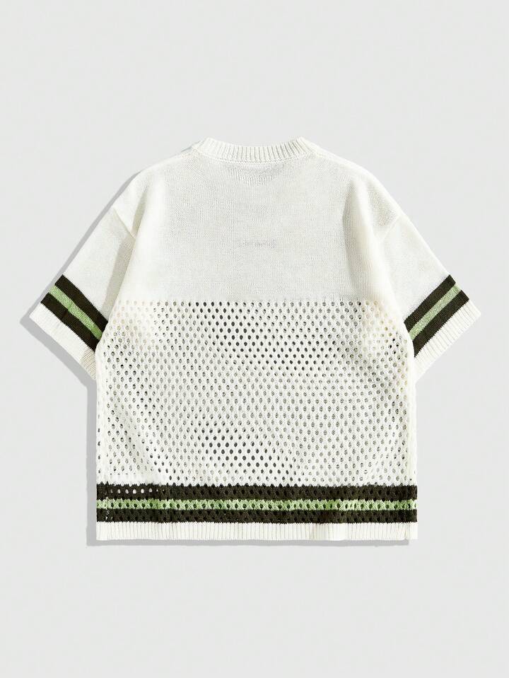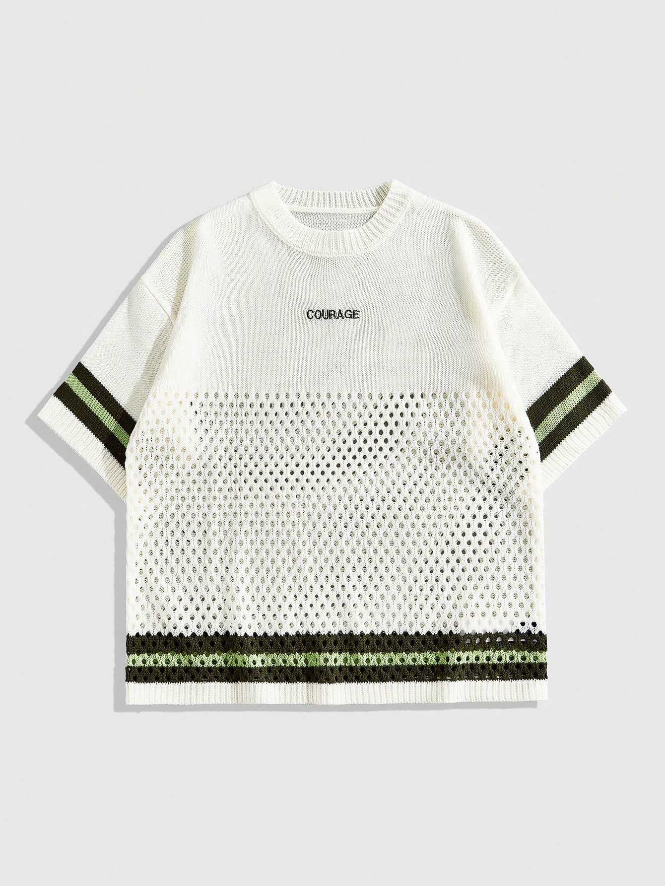 Top décontracté à manches courtes en maille ample avec lettre et rayures pour hommes