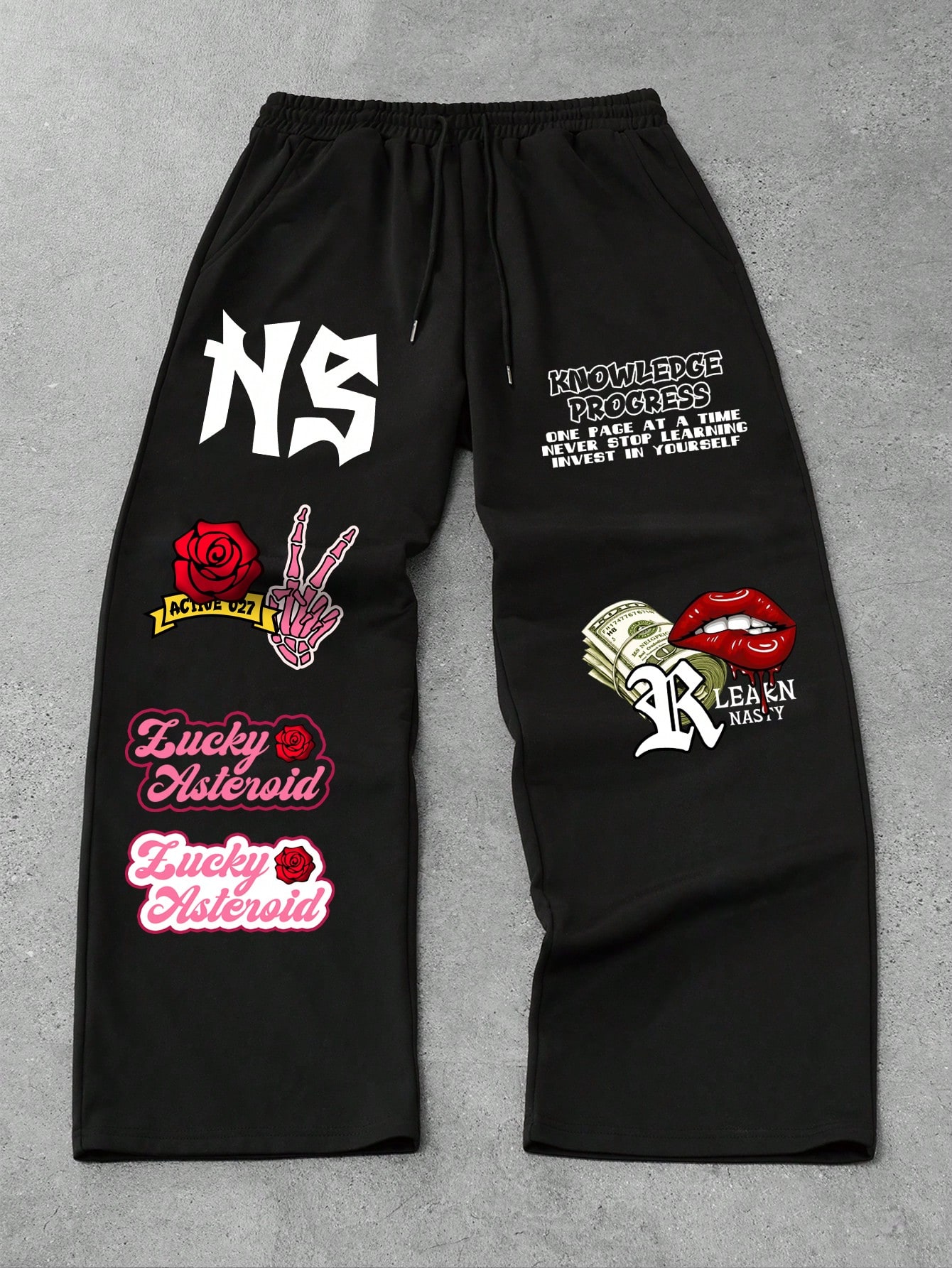 Pantalon de survêtement ample et confortable pour hommes, jambe droite, couleur noire