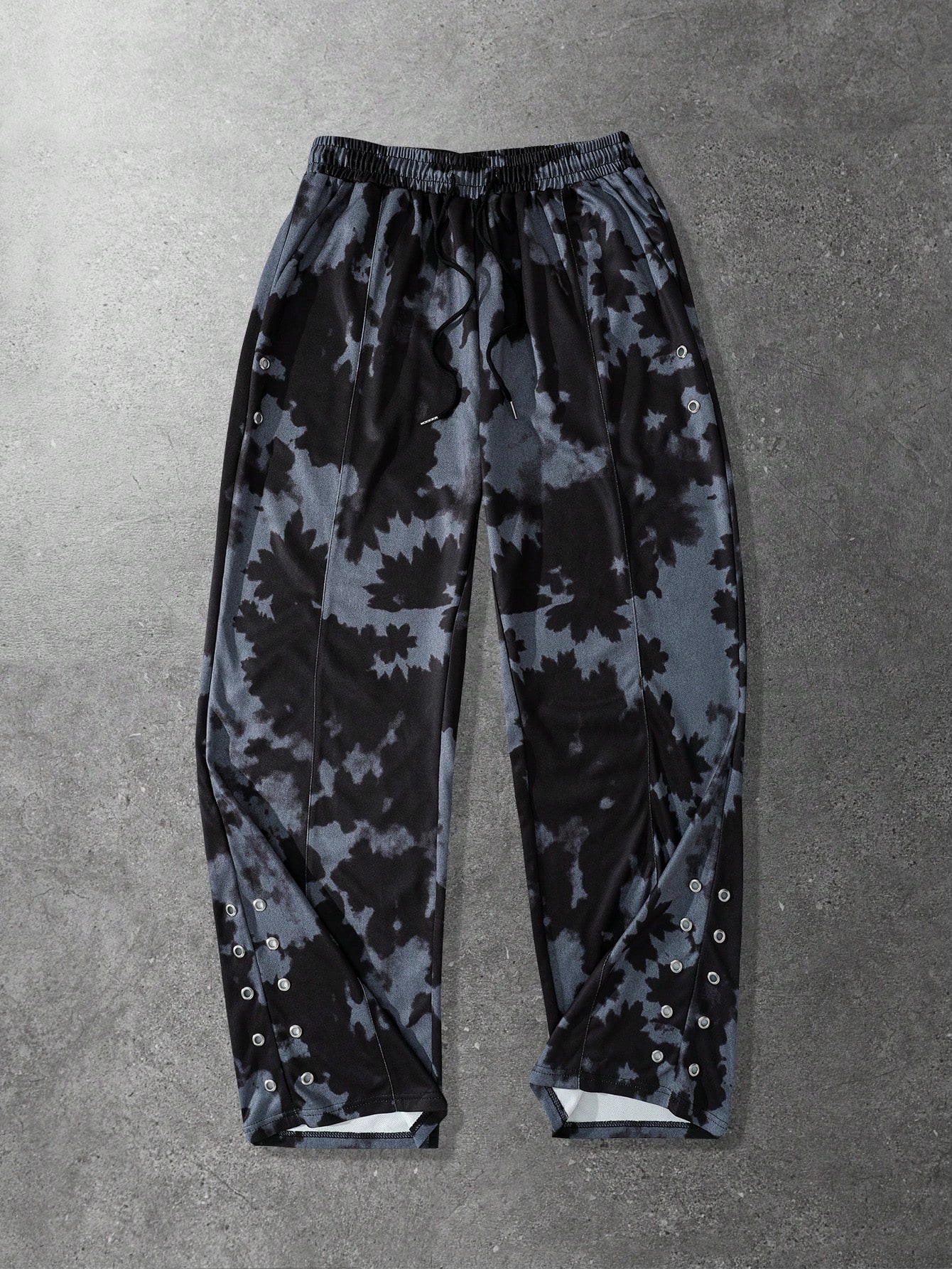 Pantalon de survêtement ample avec cordon de serrage à la taille, imprimé tie-dye avec œillets métalliques pour hommes