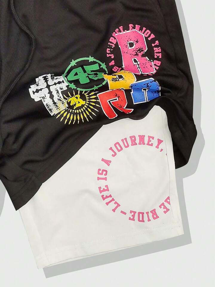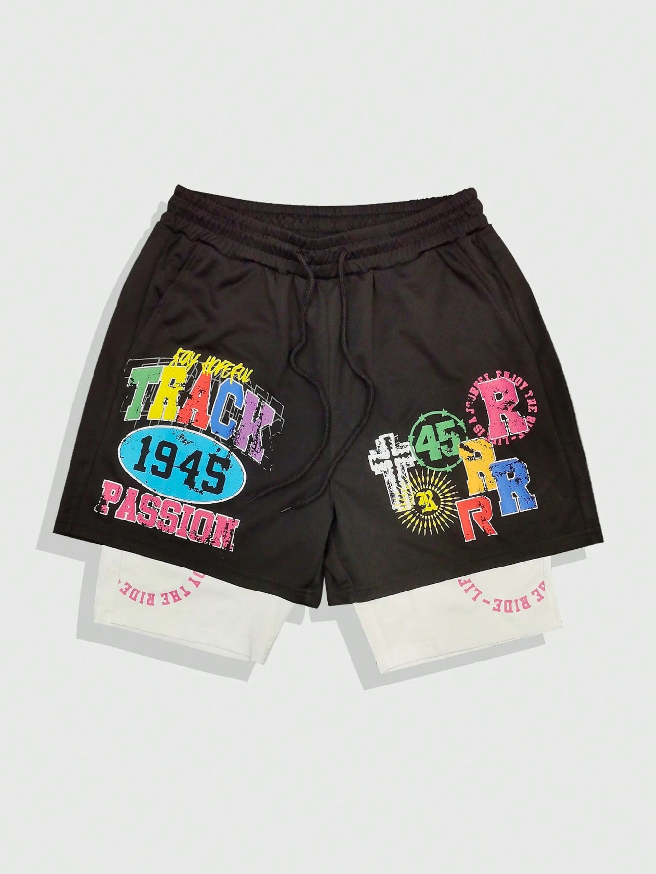 Prep Short décontracté à taille coulissante avec imprimé lettres, double couche, pour homme