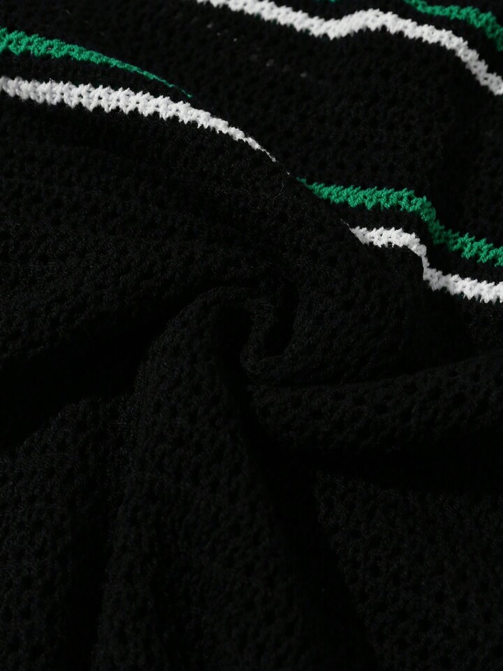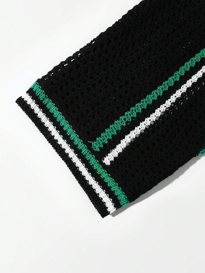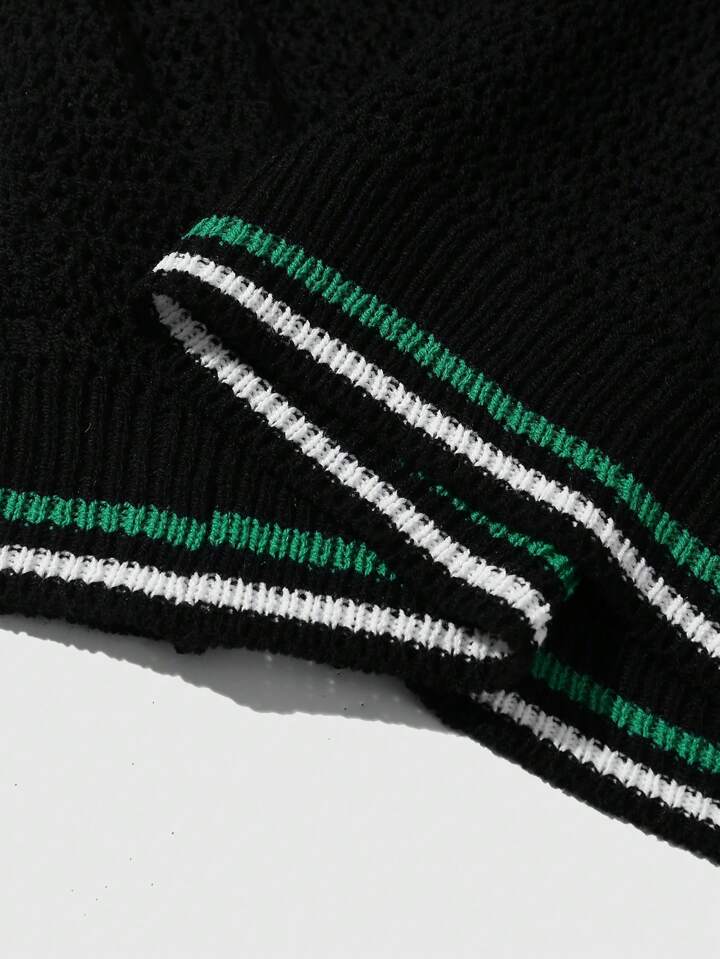 Prep Top tricoté à manches courtes avec rayures contrastées et broderie pour homme