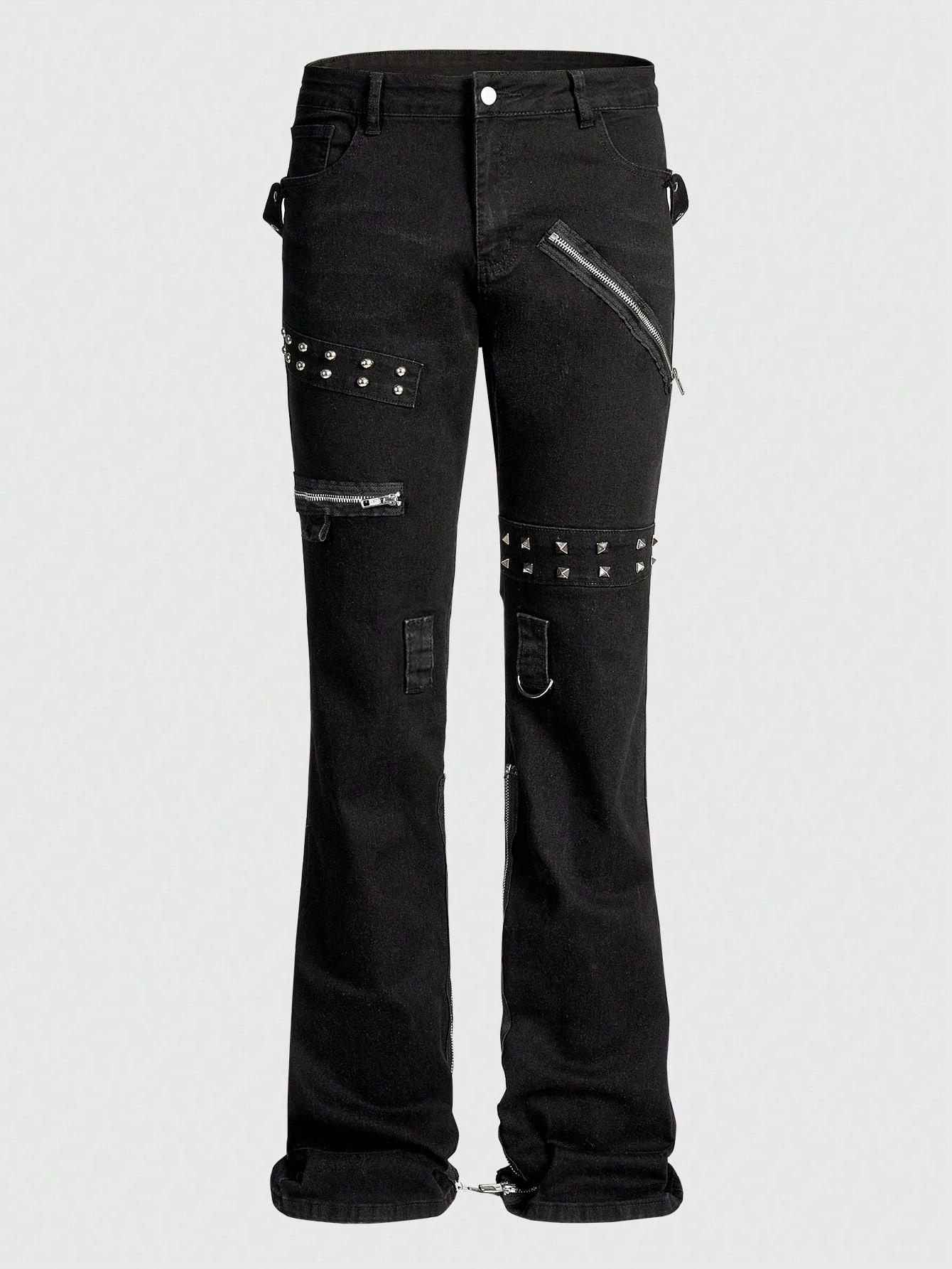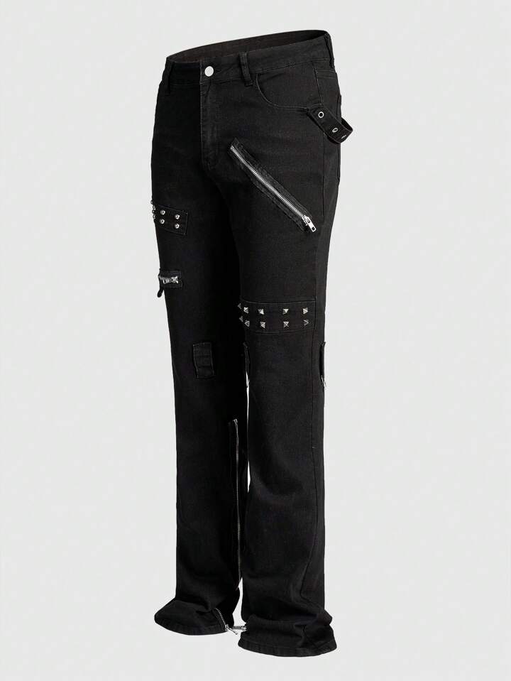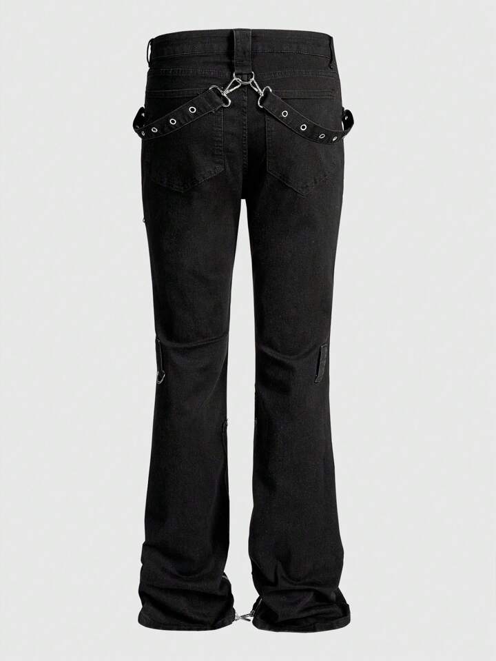Jeans de cowboy pour hommes avec design œillet et poches, évasé casual