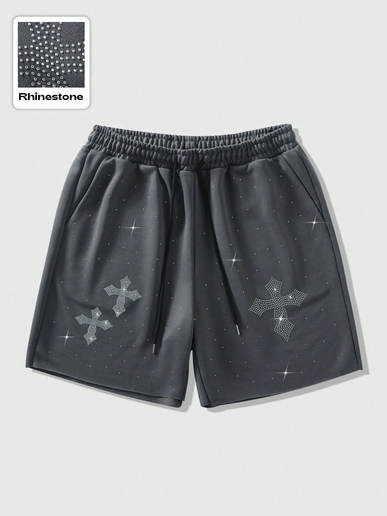 Short décontracté ample avec cordon de serrage à la taille et strass en forme de croix pour hommes