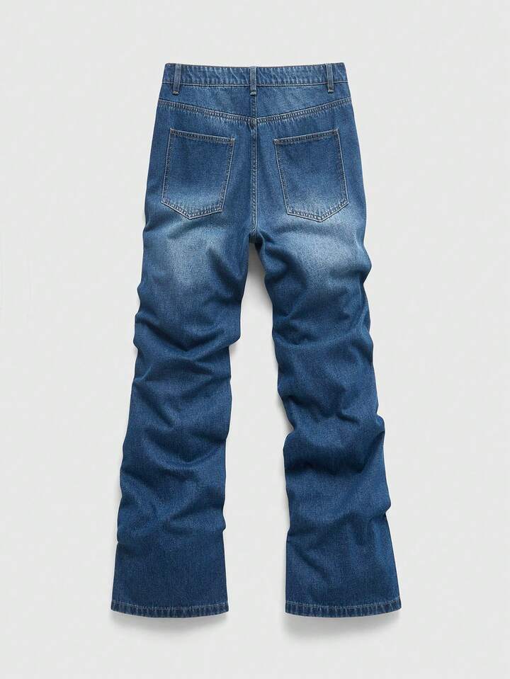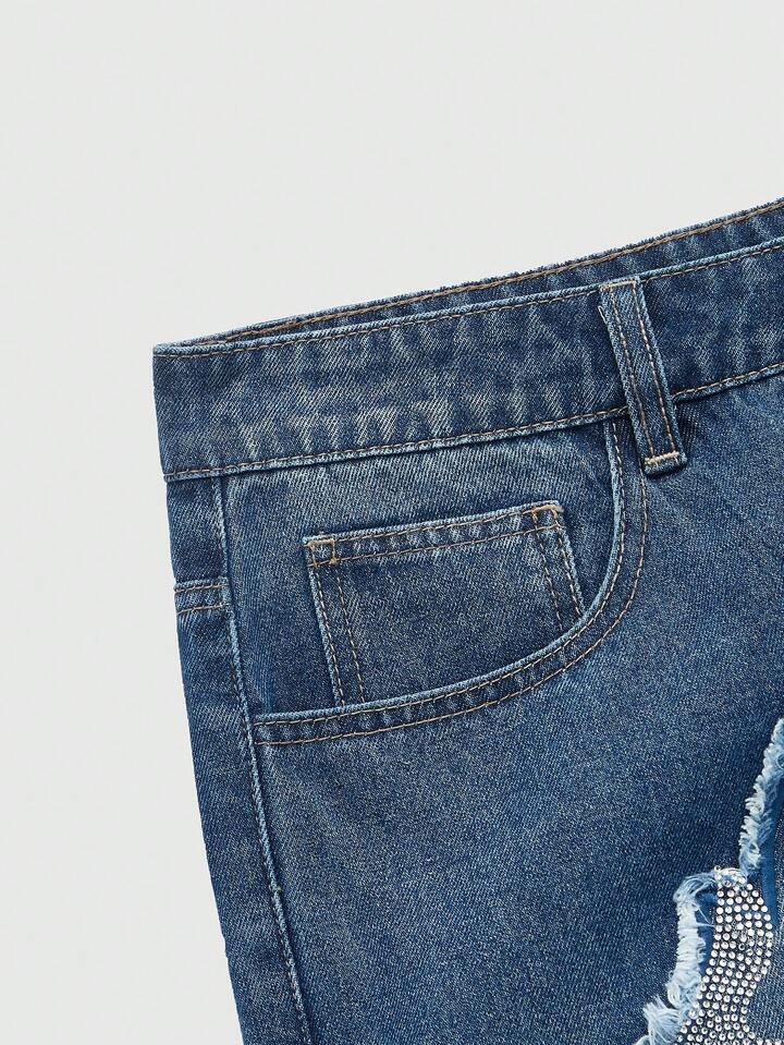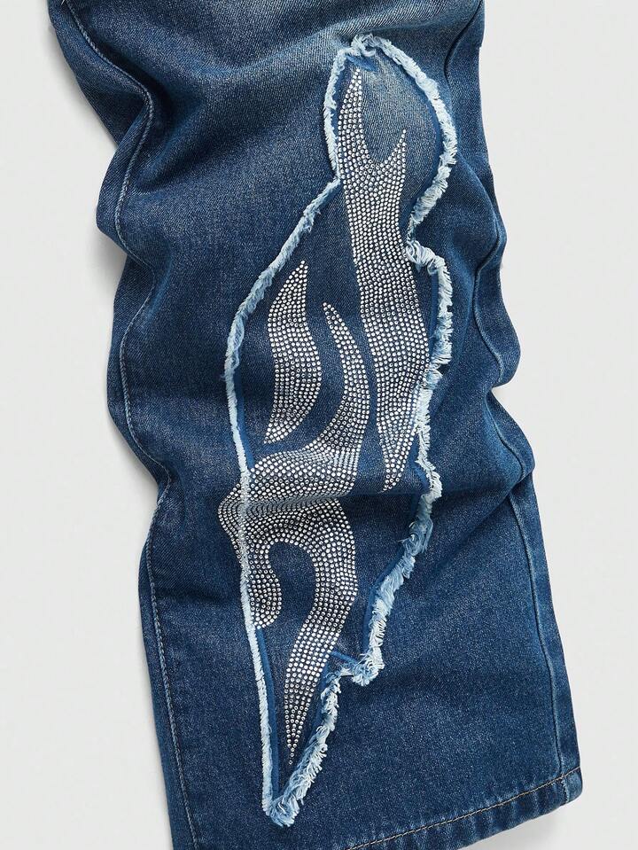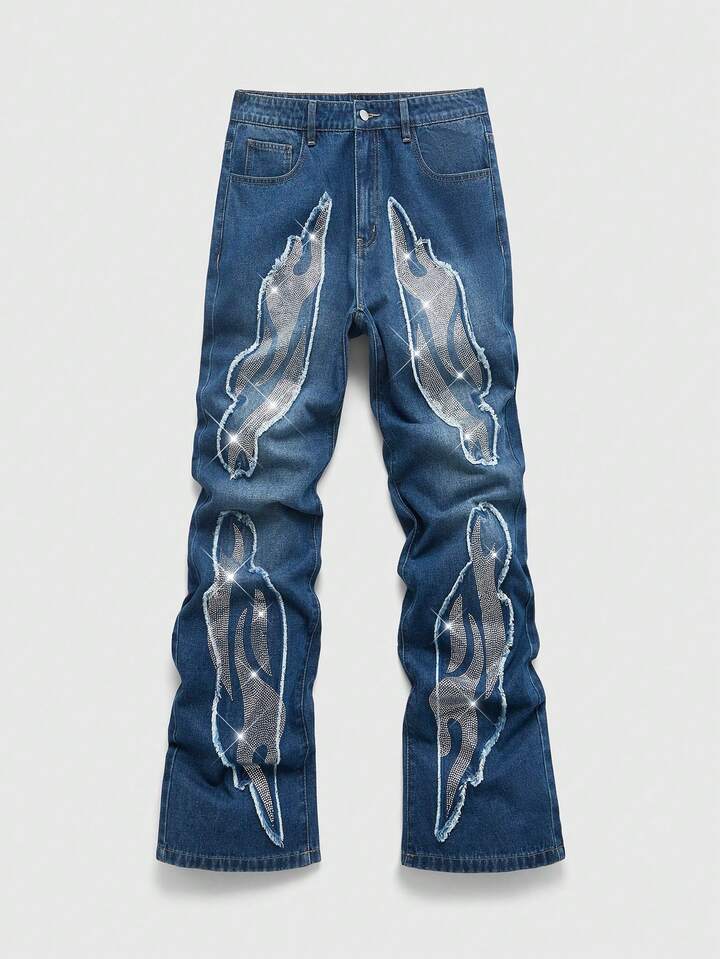 Jeans en denim avec poche avec patch brodé de flamme avec strass pour hommes