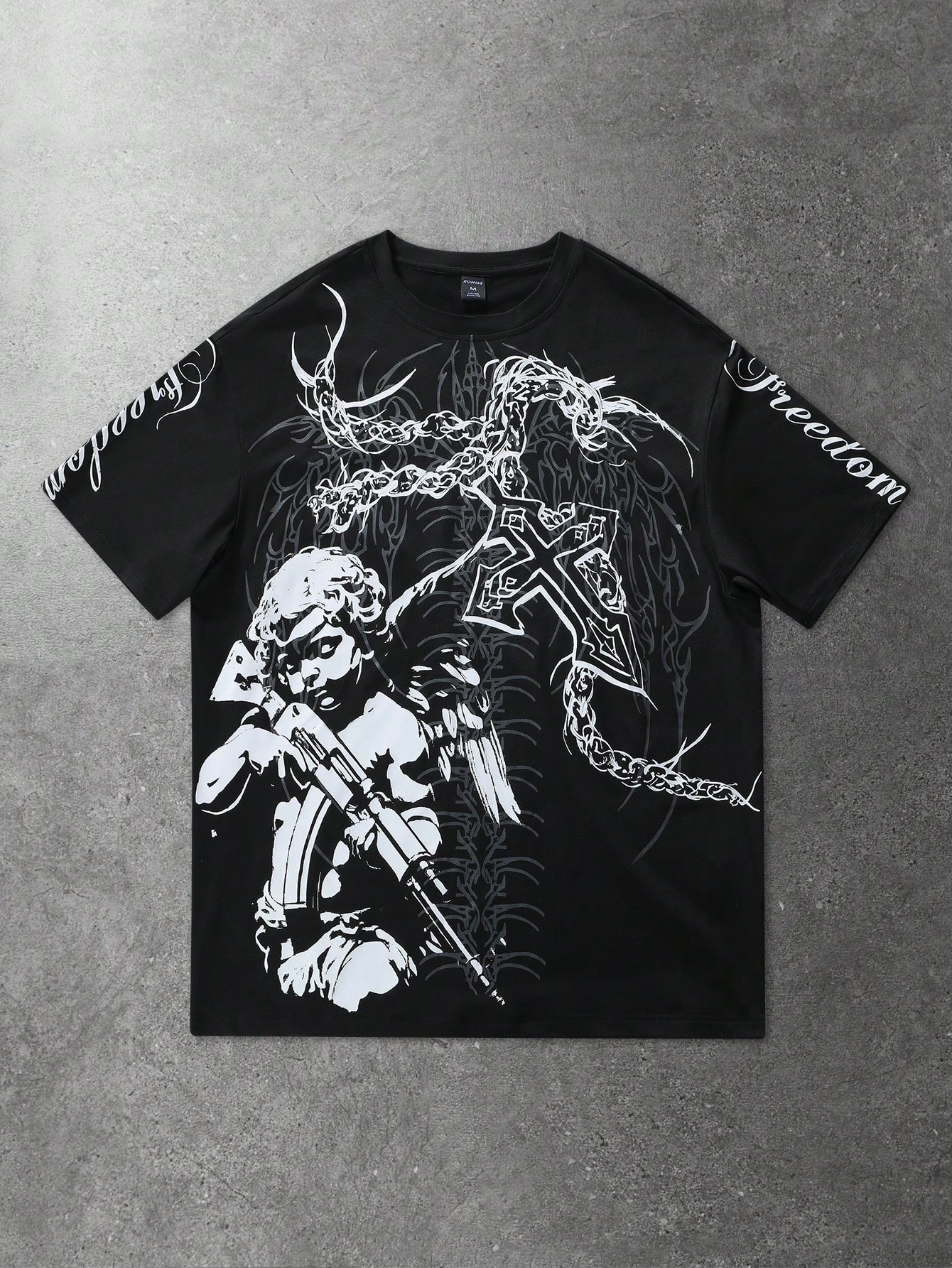 T-shirt à manches courtes pour homme, col rond, imprimé lettres d'ange, décontracté et polyvalent pour un port quotidien