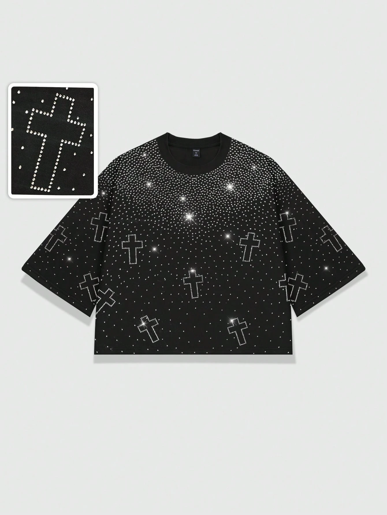 T-shirt à manches courtes pour homme, col rond, avec motif croix et strass, polyvalent et décontracté pour le port quotidien