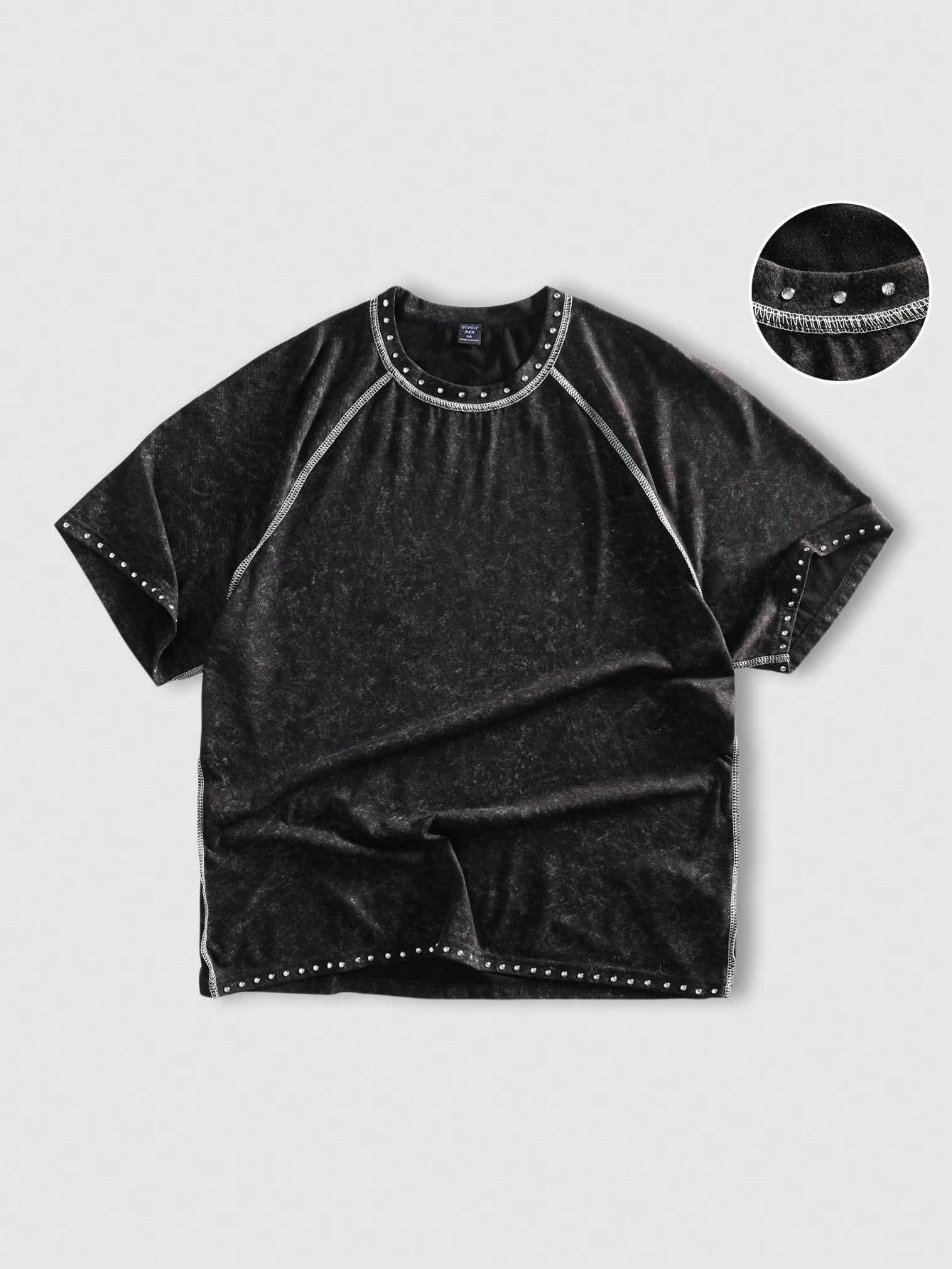 T-shirt casual à manches courtes pour homme avec ornements de strass au col rond