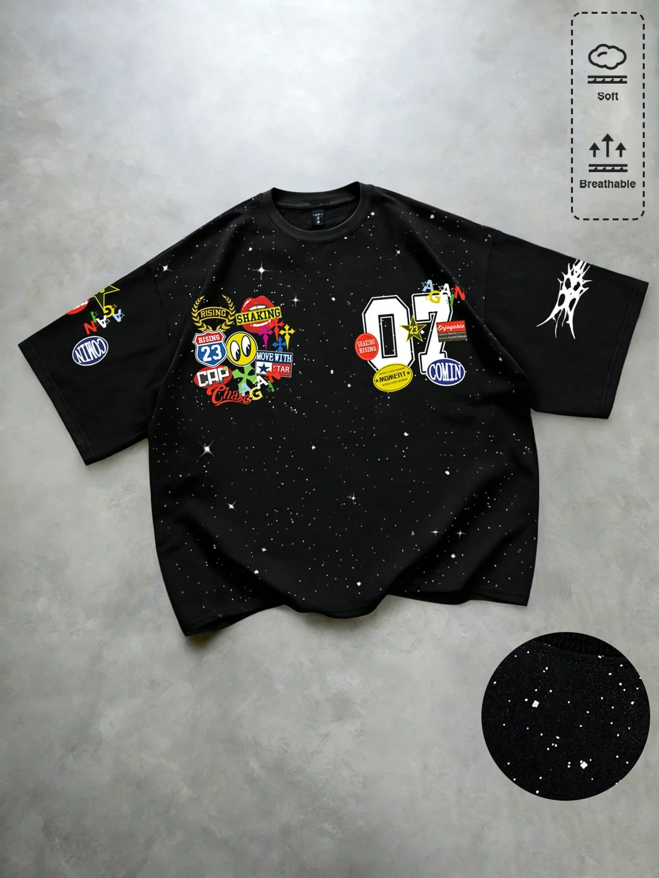 T-shirt à manches courtes pour hommes avec imprimé graphique pailleté brillant