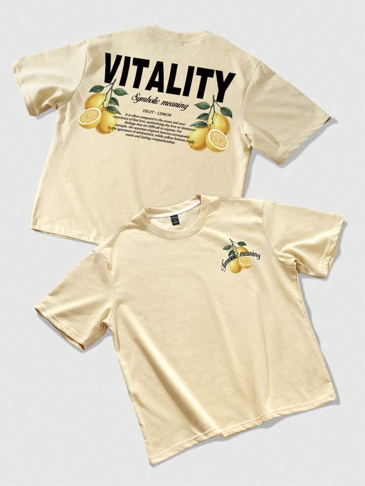 Casual T-shirt à manches courtes pour hommes avec imprimé fruits de citron, sport décontracté