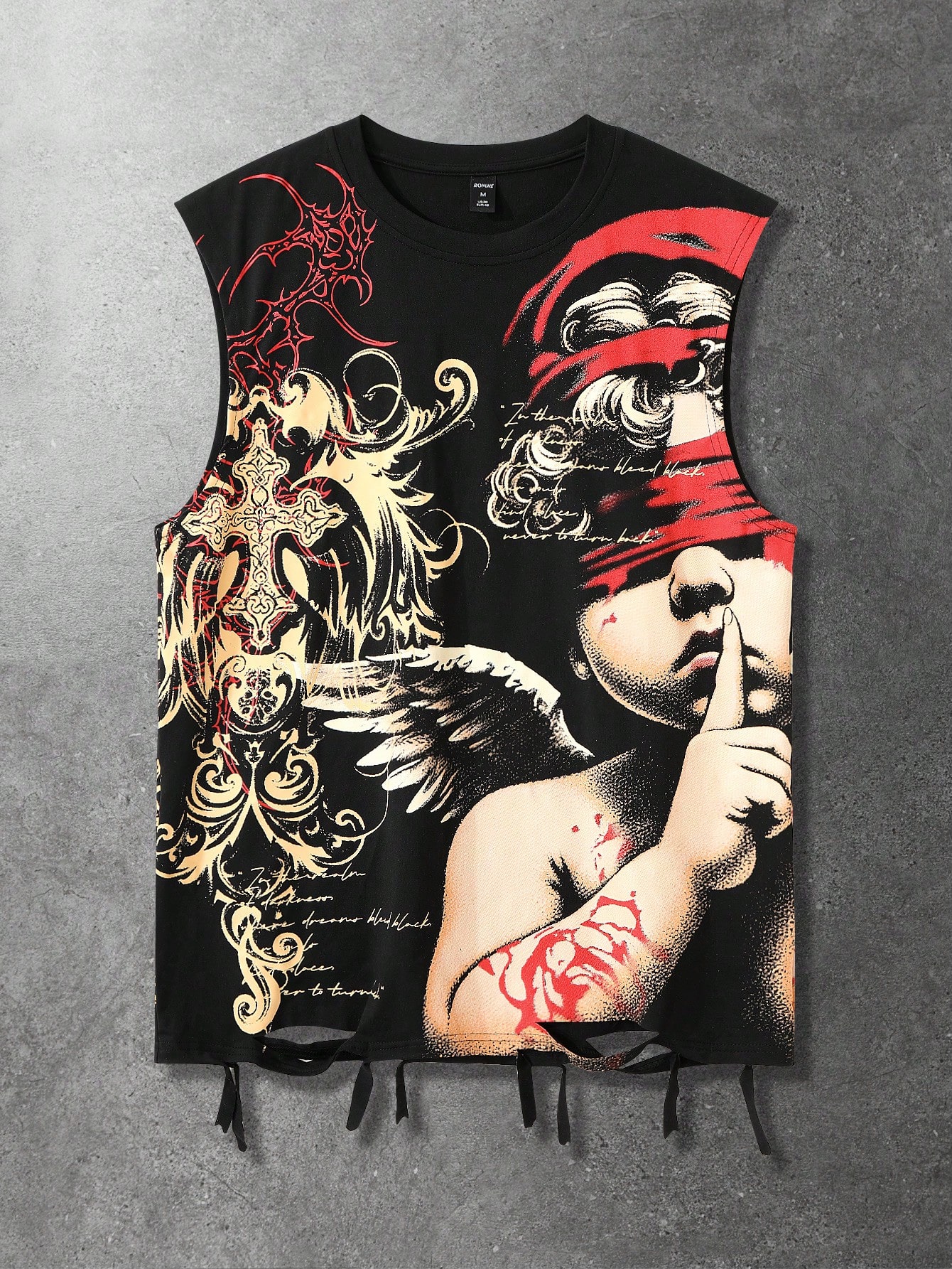 Débardeur pour hommes, style de rue, Top débardeur déchiré avec imprimé ange américain sombre et enfant épineux