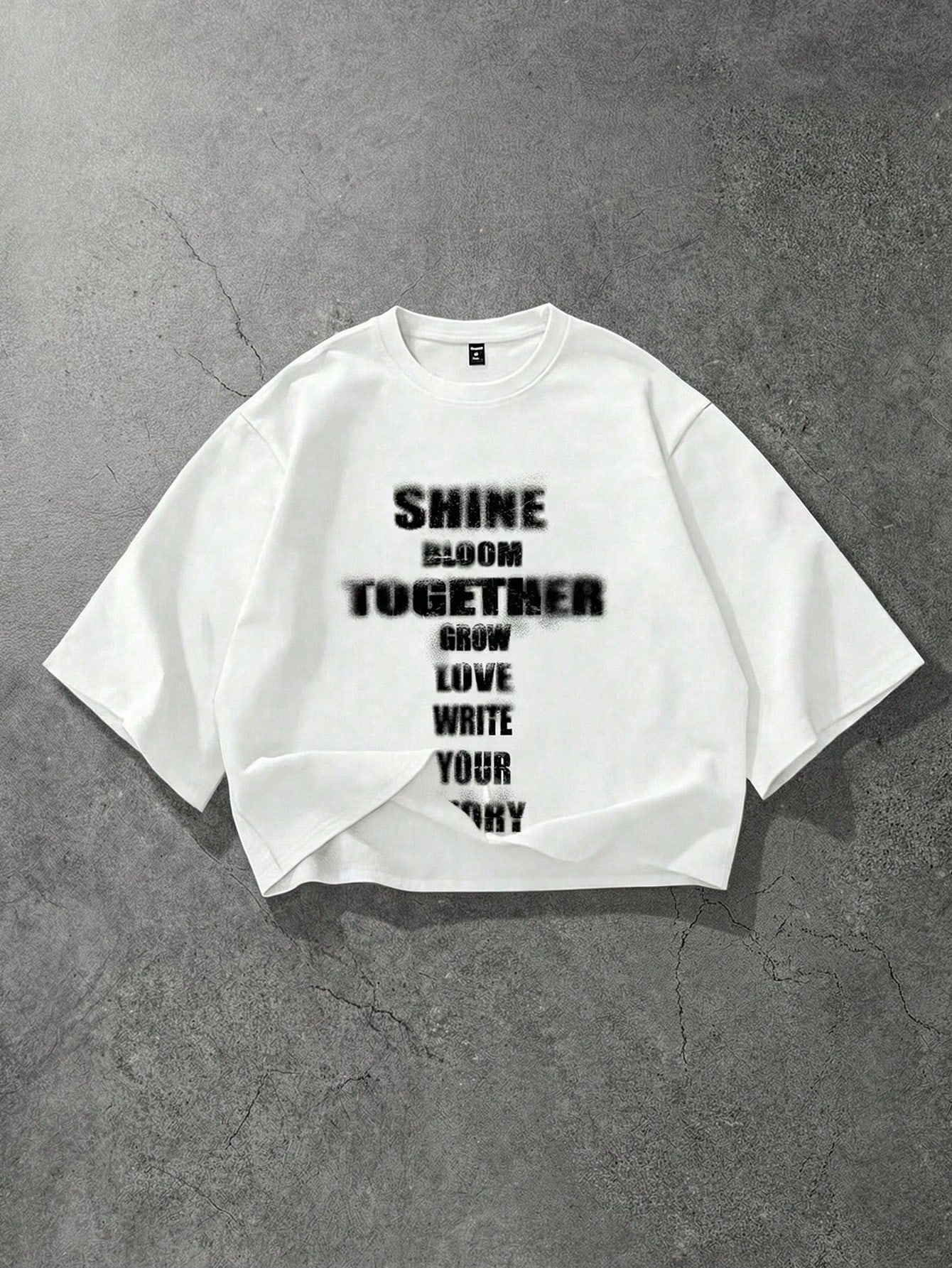 T-shirt ample à manches 3/4 avec imprimé slogan pour hommes