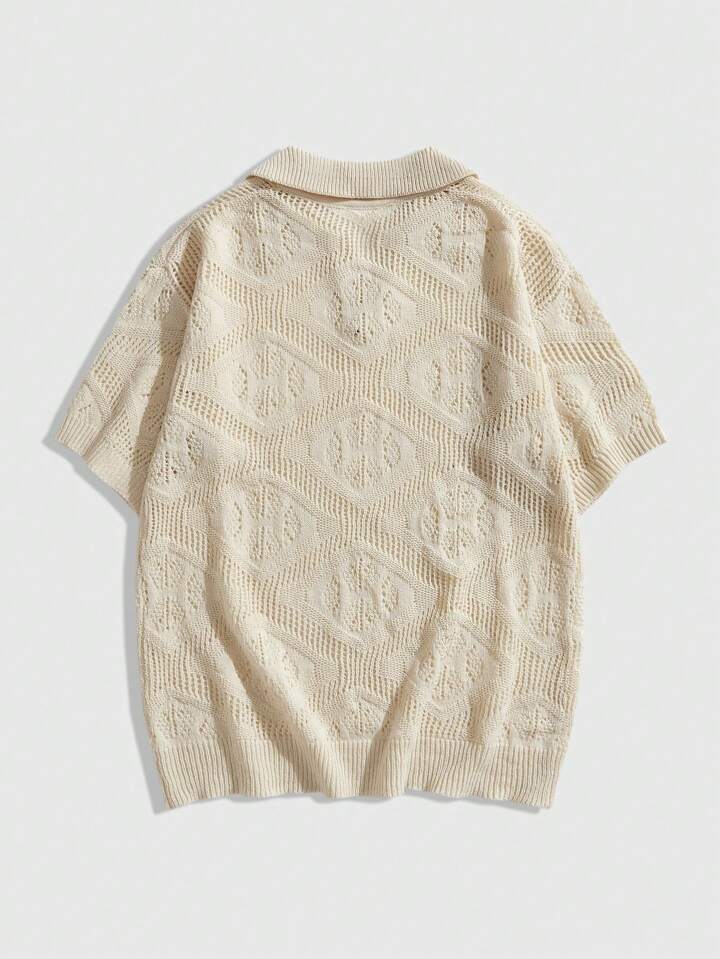 Casual Pull tricoté décontracté à manches courtes avec col rabattu de couleur unie, automne/hiver