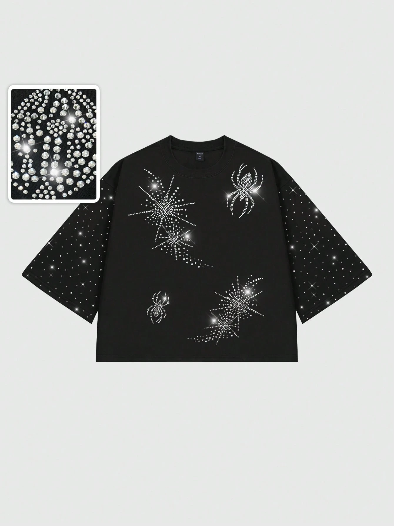 T-shirt à manches 3/4 avec graphique d'araignée scintillante en diamant pour hommes