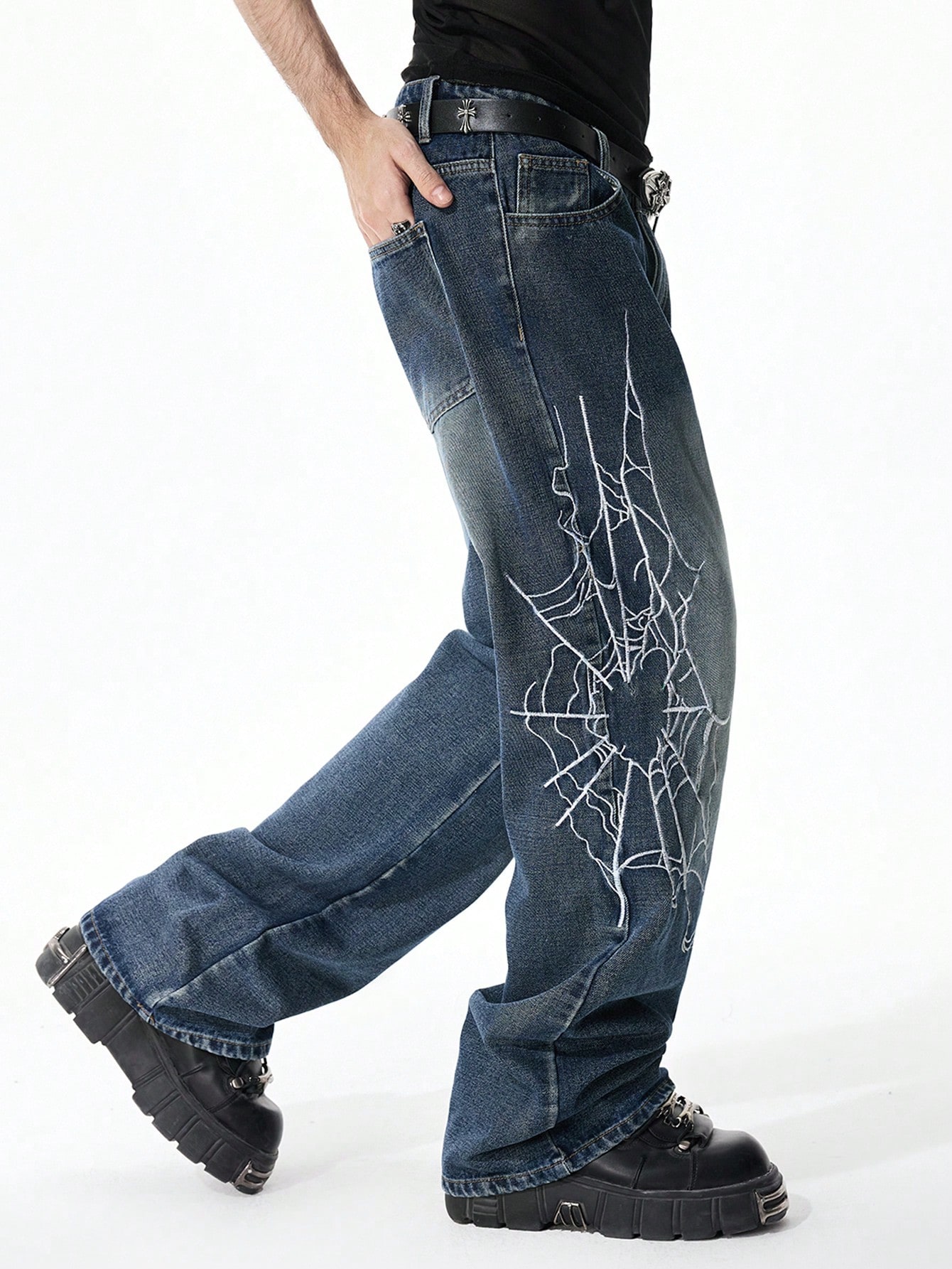 Jeans évasés avec poche en forme de toile d'araignée pour hommes