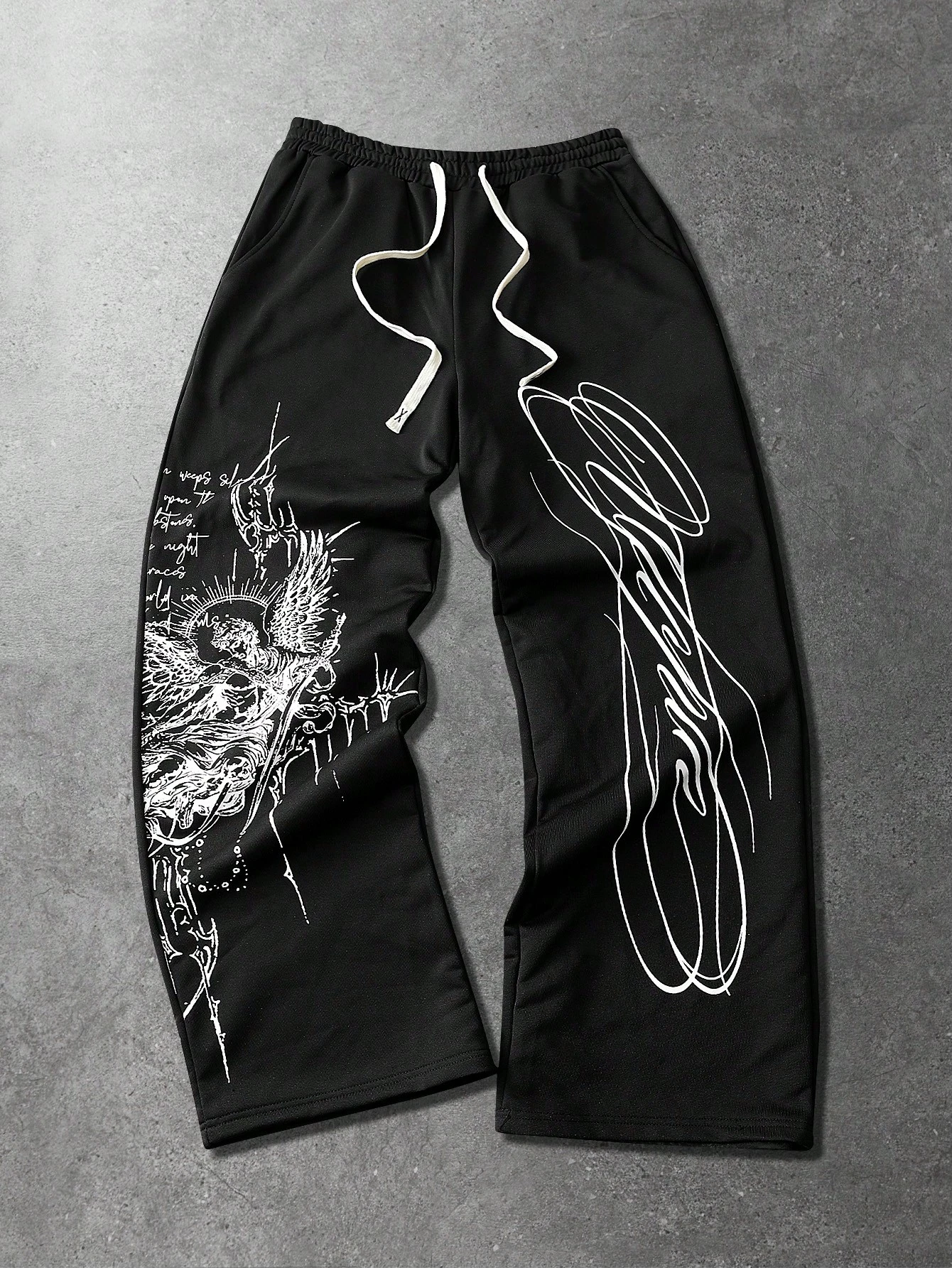 Pantalon de survêtement à jambe droite pour hommes avec style de rue américain, imprimé anglais sombre. Tenue décontractée pour tous les jours.