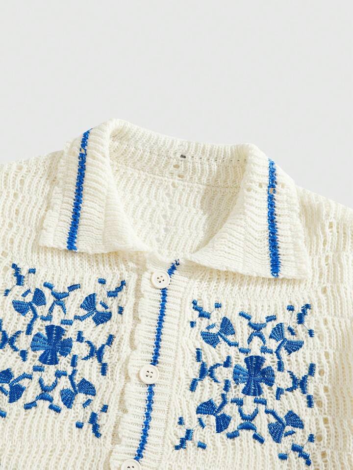 Street Life Chemise ample à manches courtes, tricot casual, motif brodé pour homme