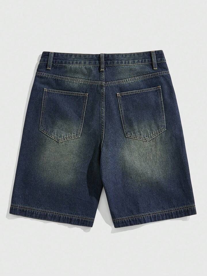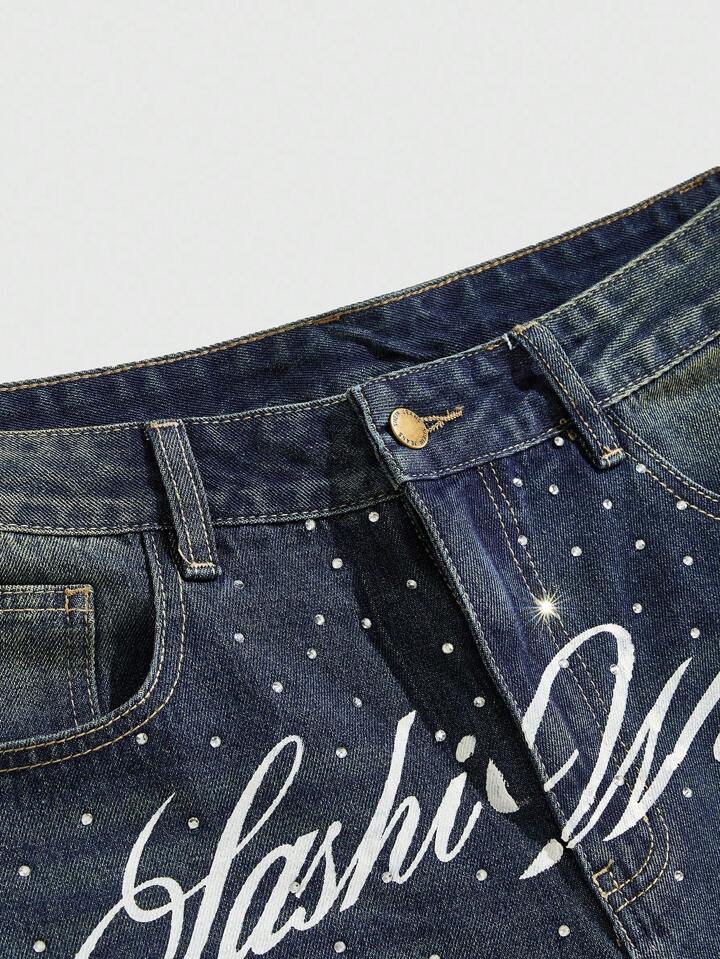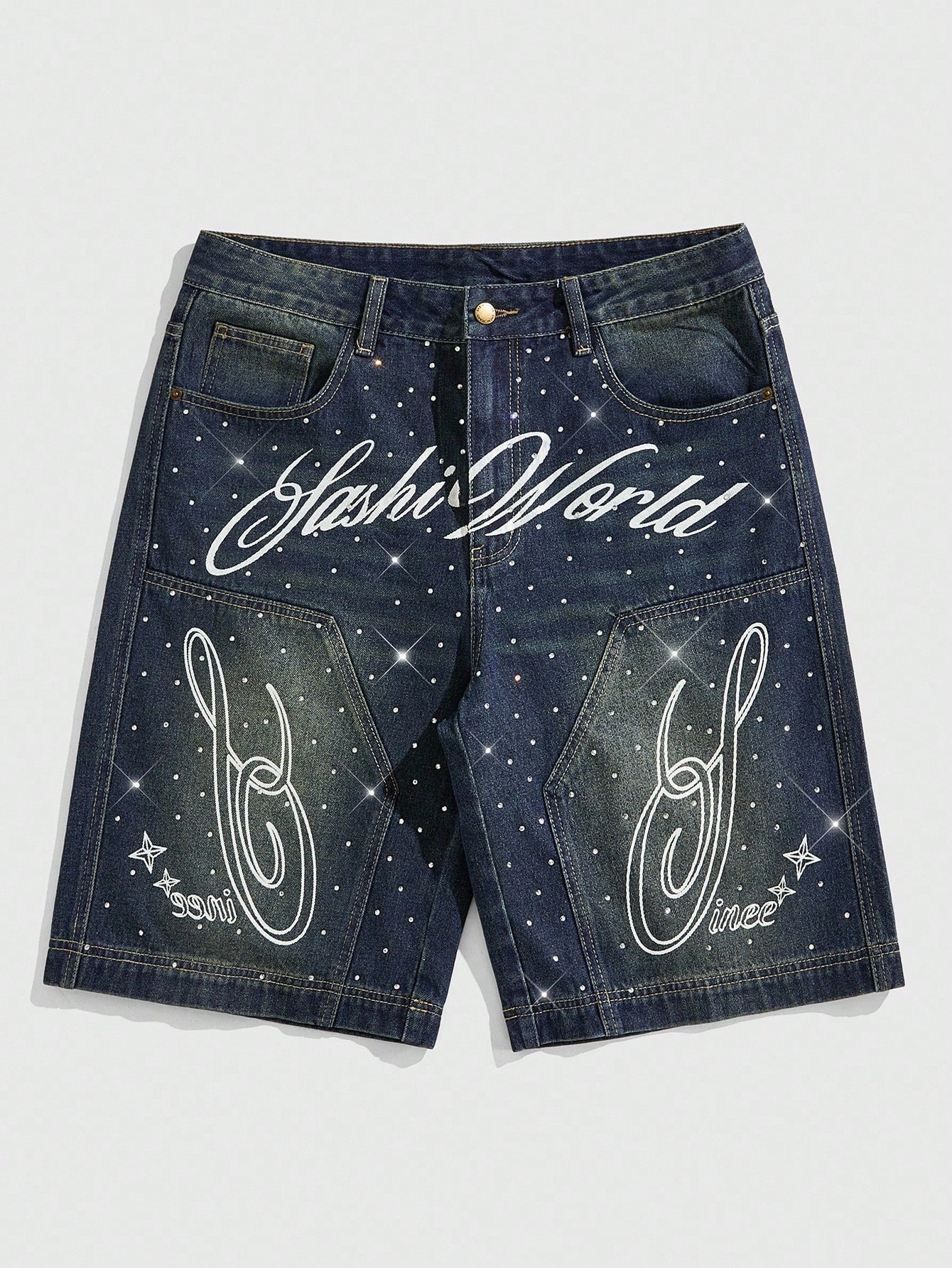 Street Life Short en denim avec impression de lettre strass pour hommes, convient pour le port casual, printemps/été