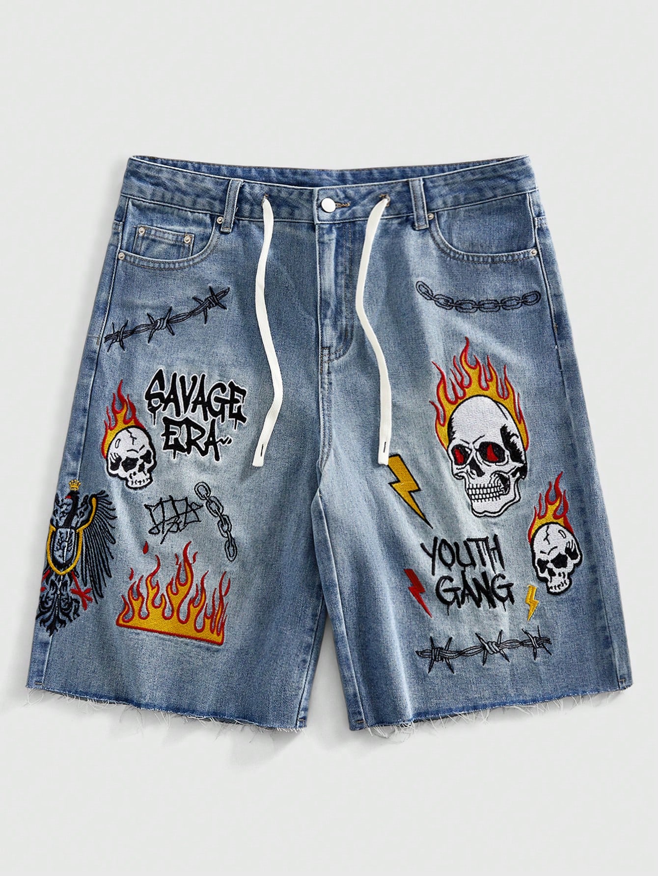 Short en jean brodé style urbain pour hommes