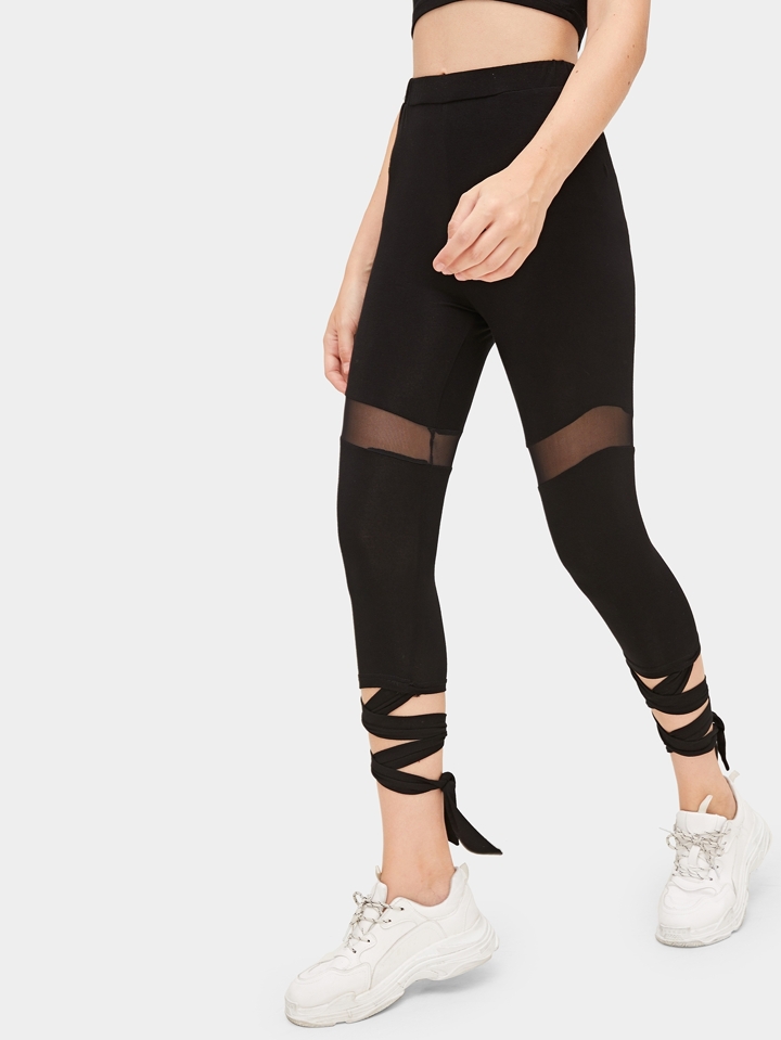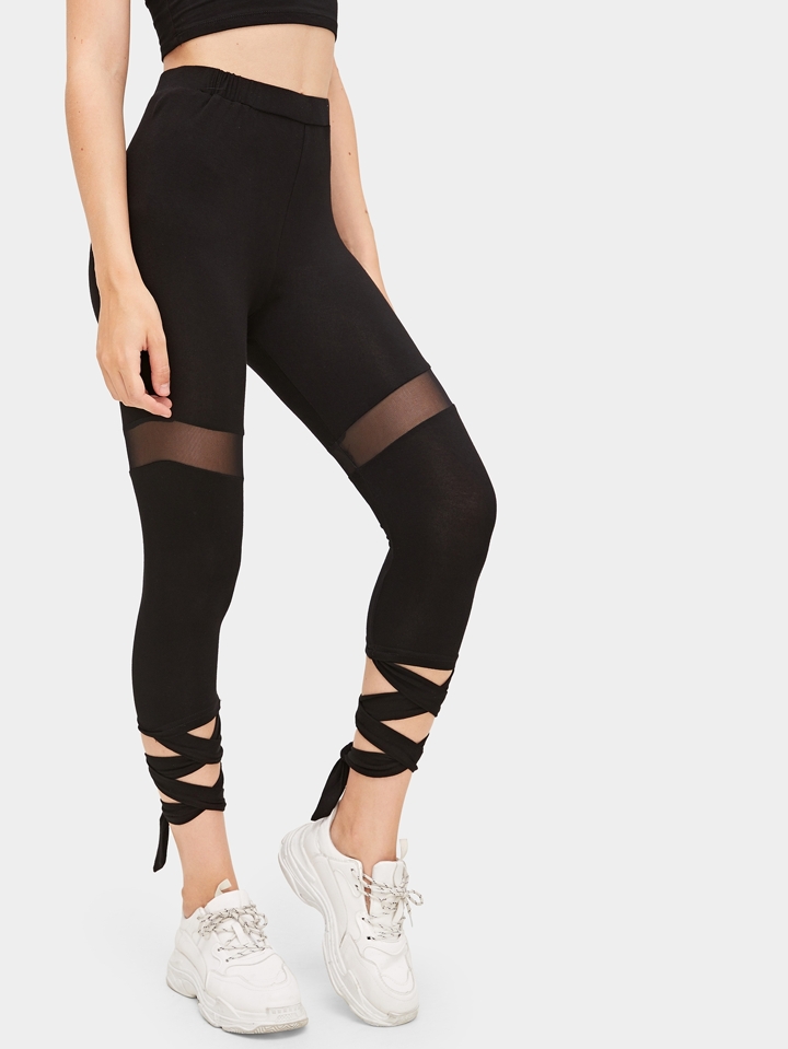 Legging à lacets avec pièces transparentes