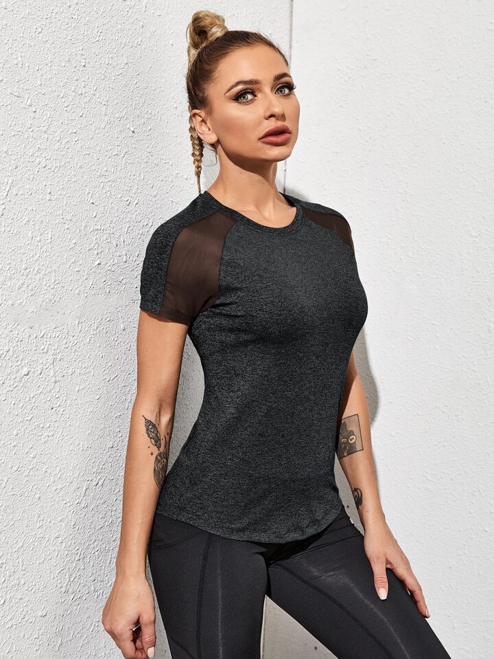 T-shirt de sport avec tulle manches raglan