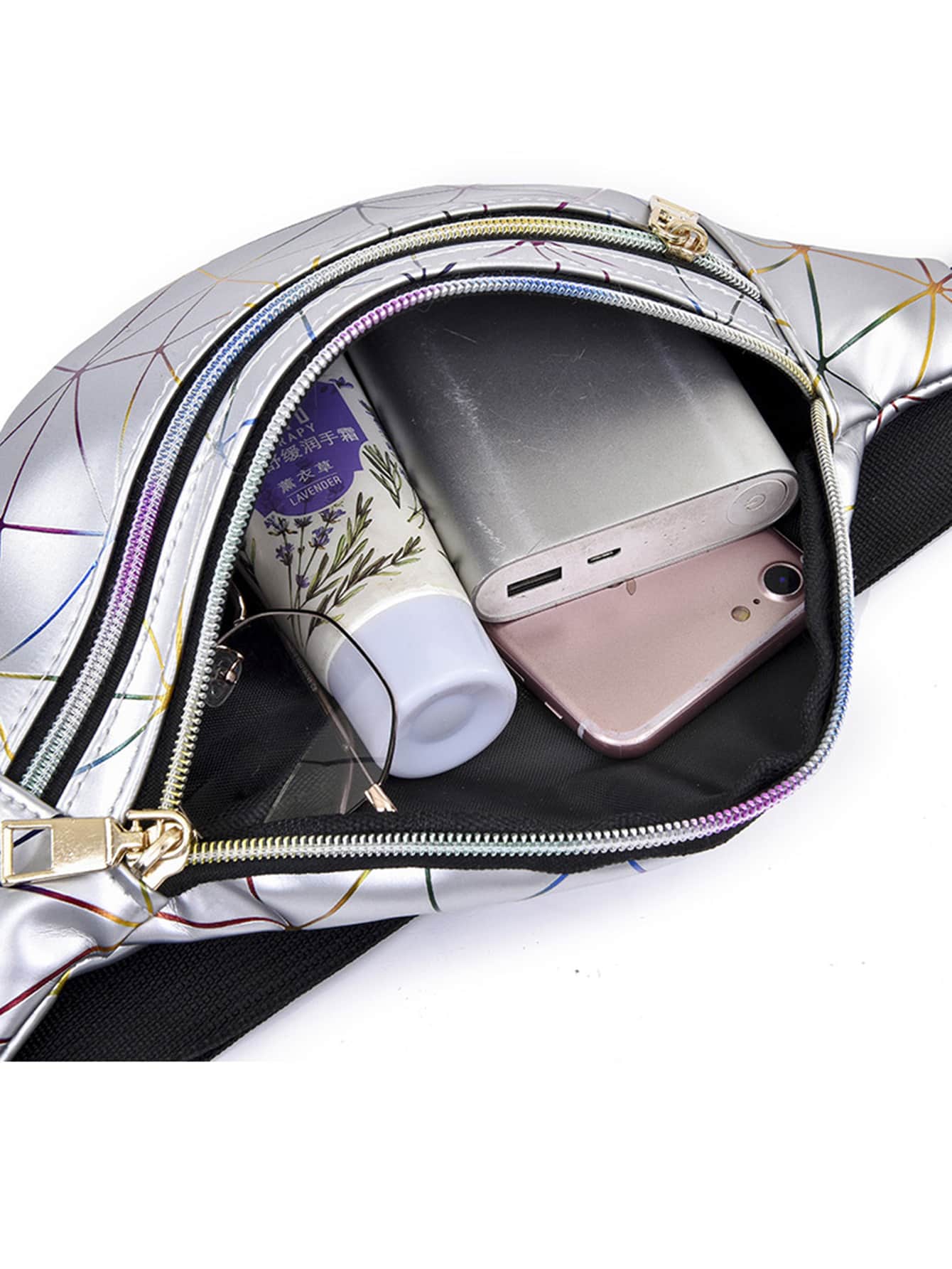 Sac banane métallique à motif géométrique