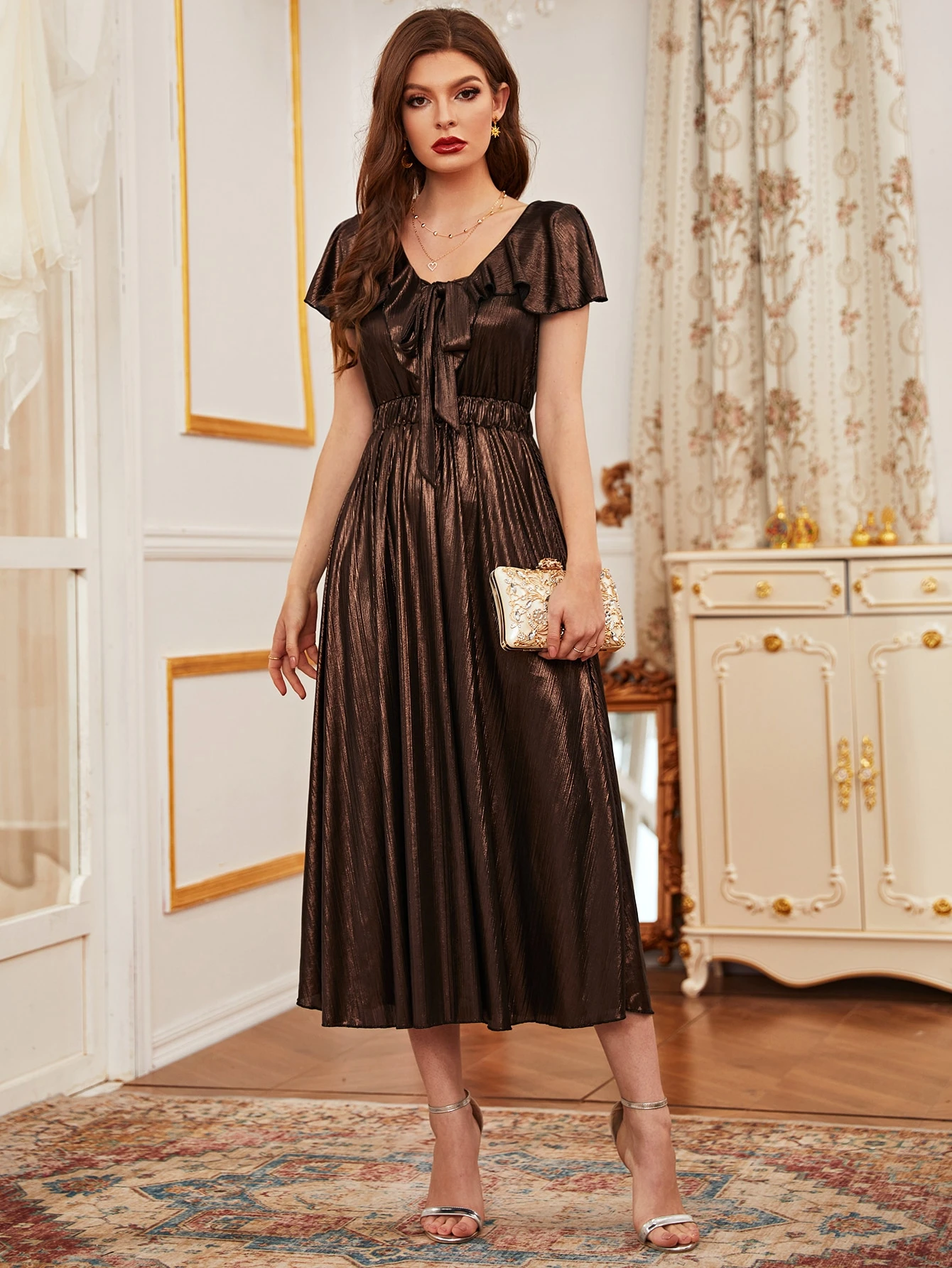 Robe métallique à volants