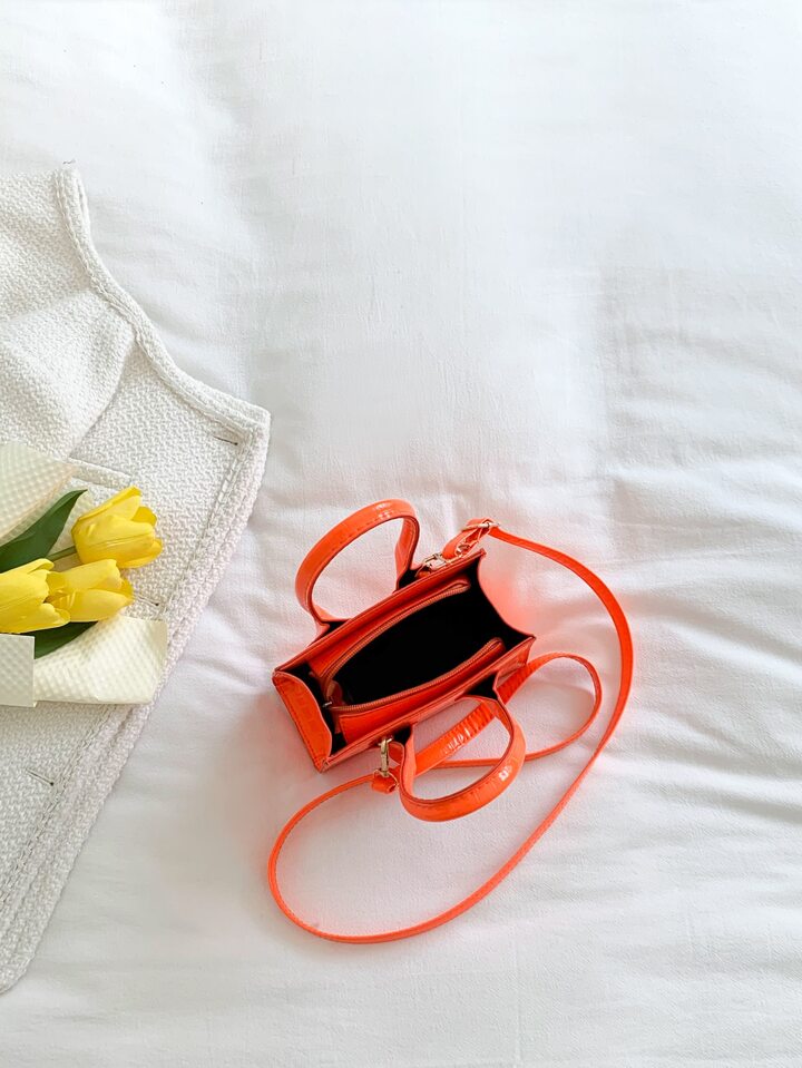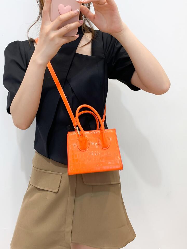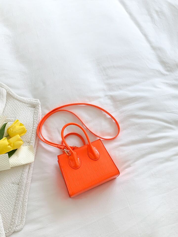 Sac carré mini fluo en relief de crocodile
