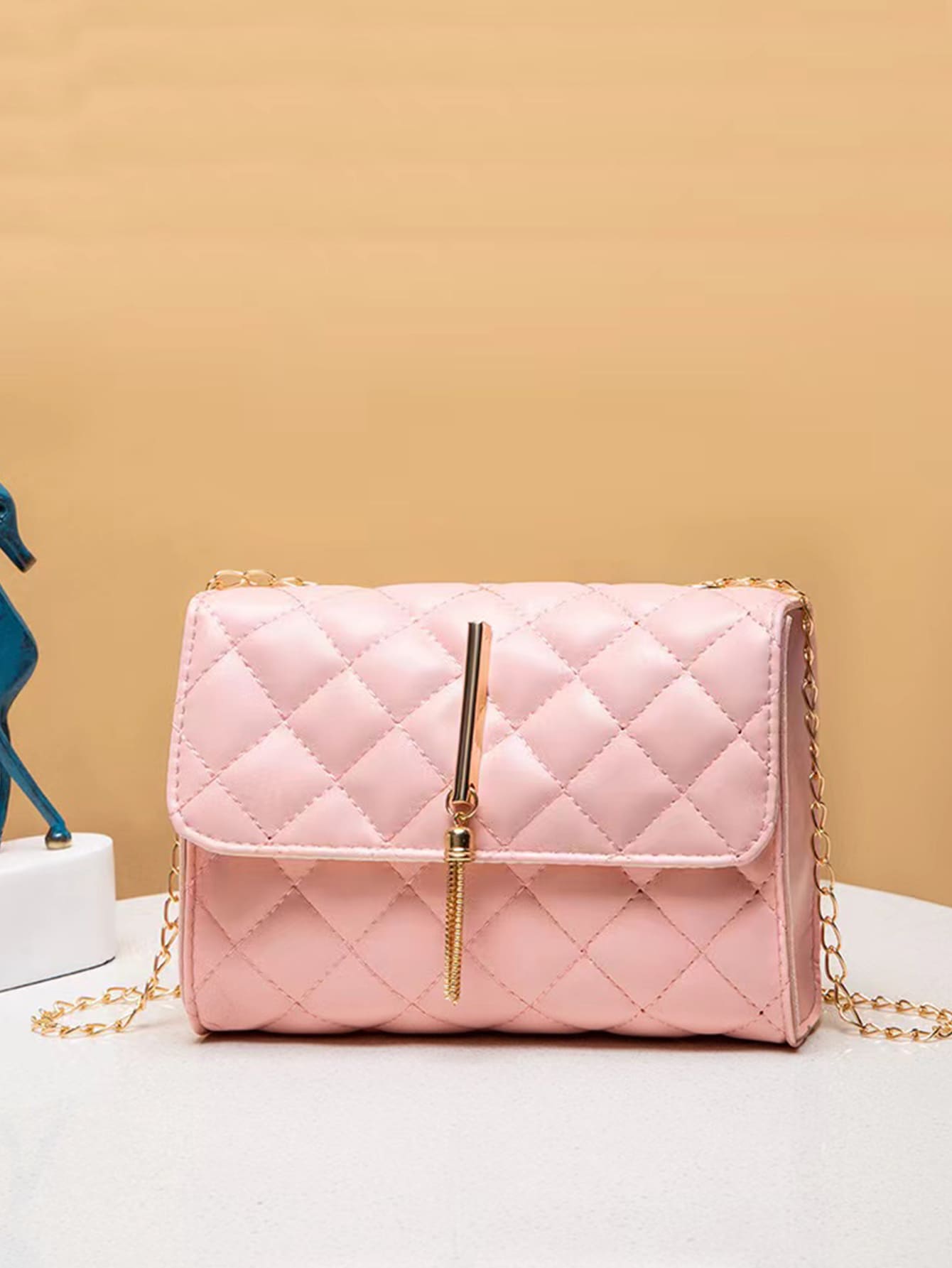 Sac à bandoulière à chaîne mini matelassé à franges