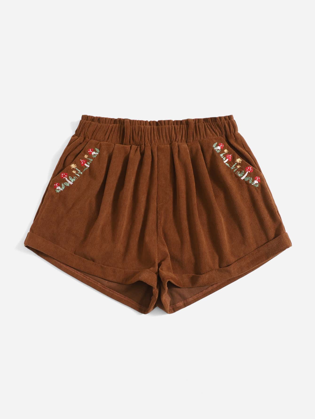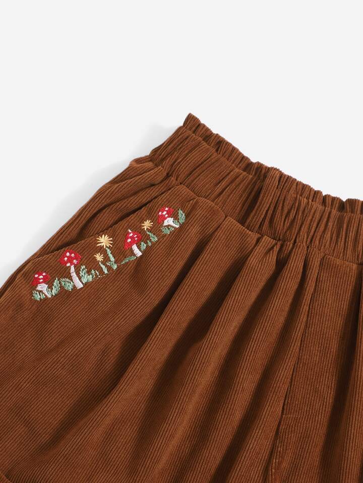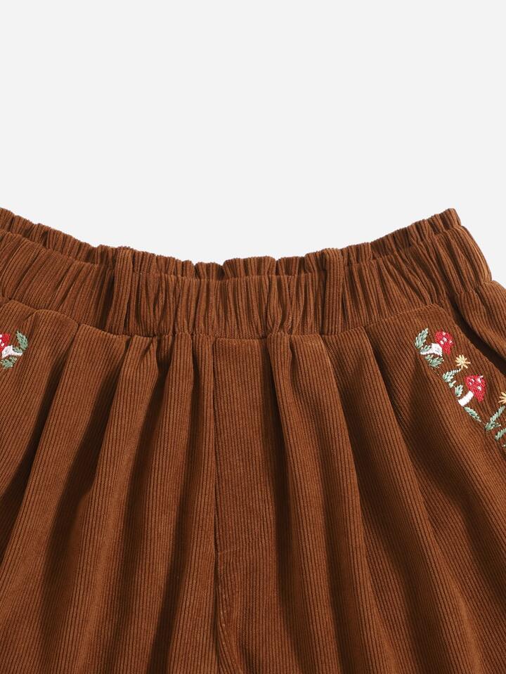 Short à broderie en velours côtelé