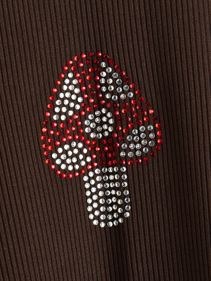 T-shirt court champignon à strass à couture