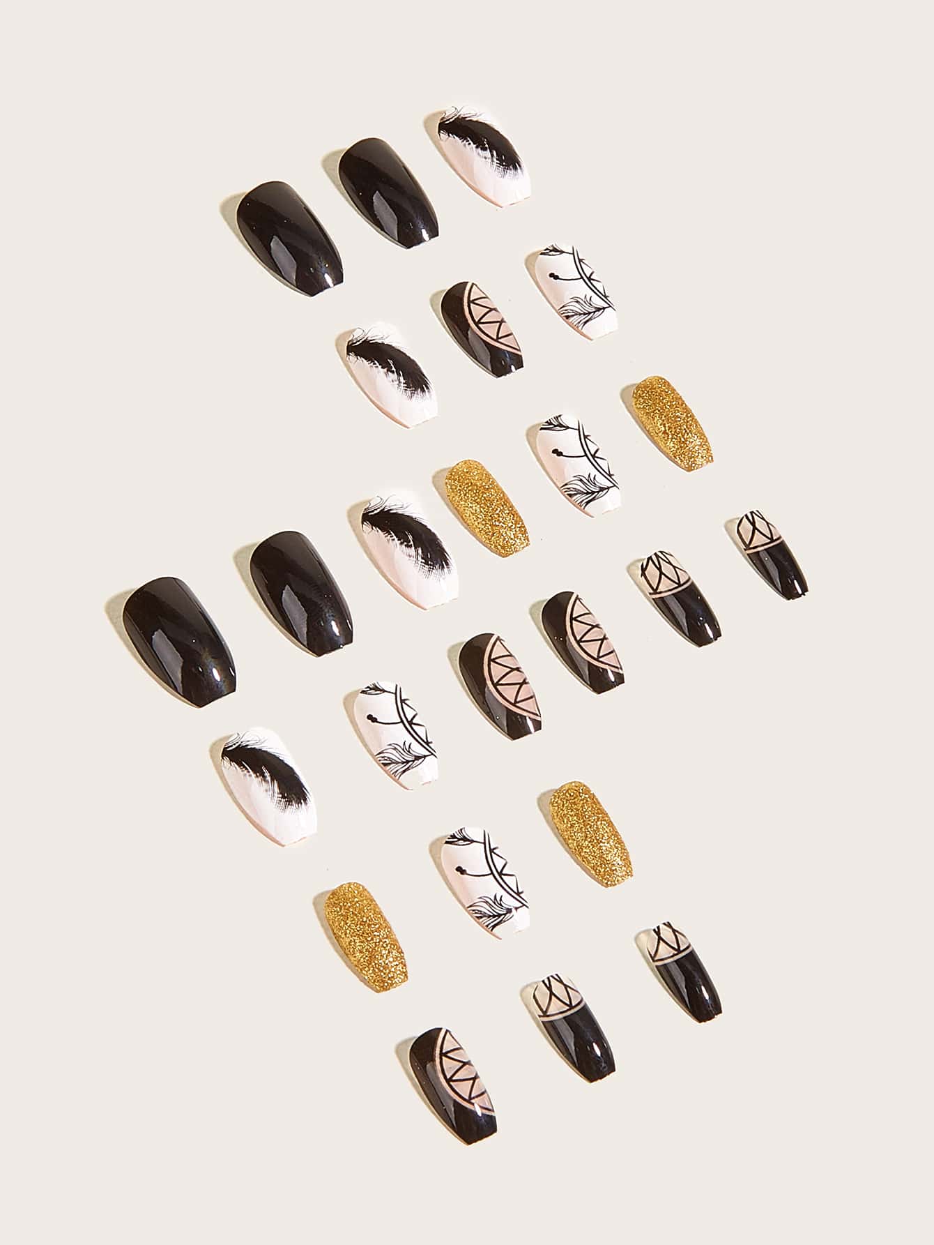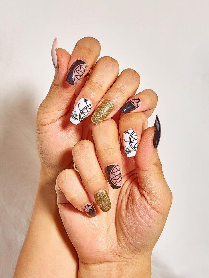 Nail Nina 24 pièces Faux ongles scintillant & 1 feuille Ruban