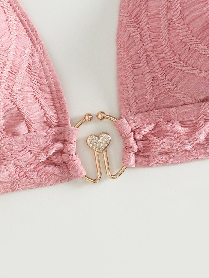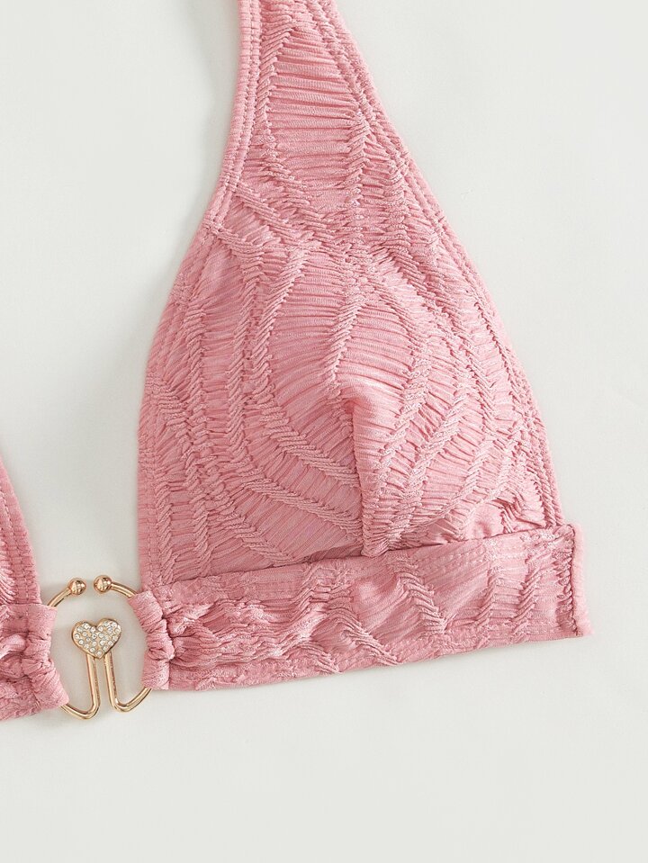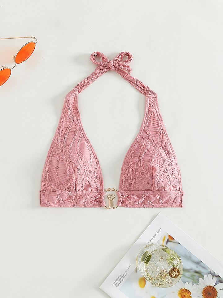 Haut de bikini ras-du-cou à détail anneau O en jacquard