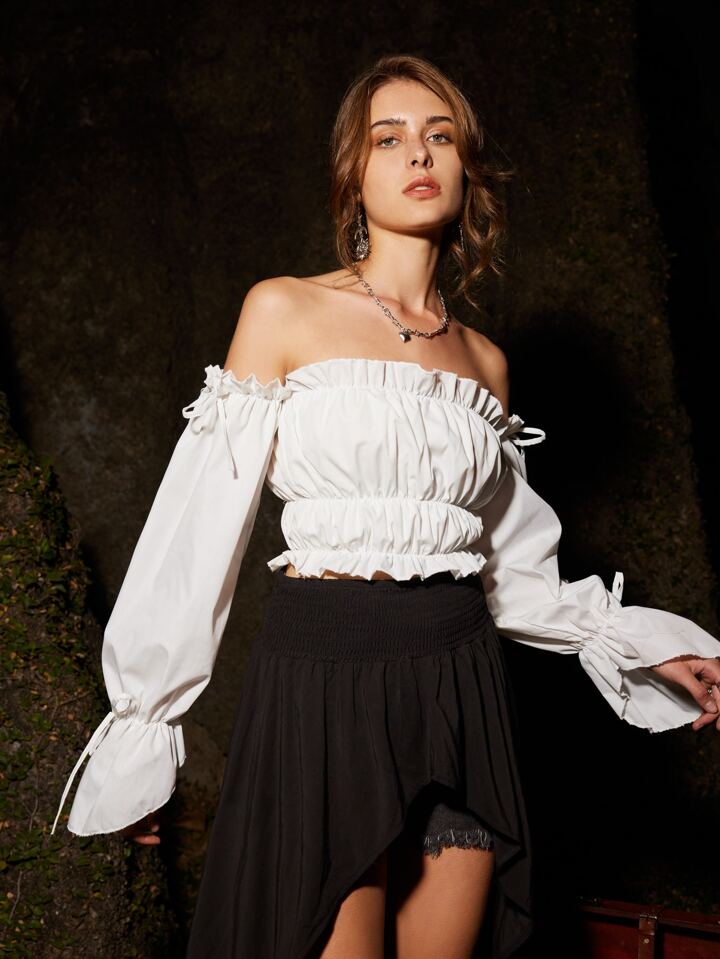 Blouse col bardot à plis