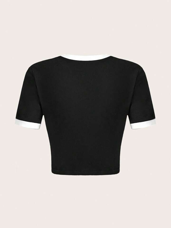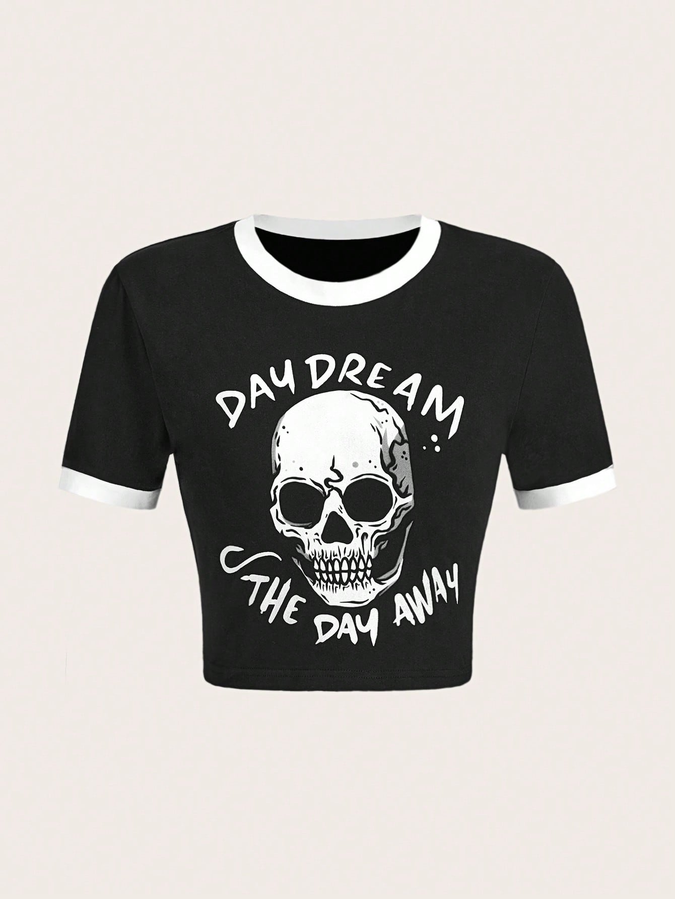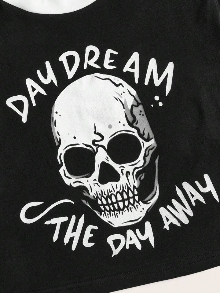 OhhMeed T-shirt court tête de mort & graphique de slogan à liseré contrastant