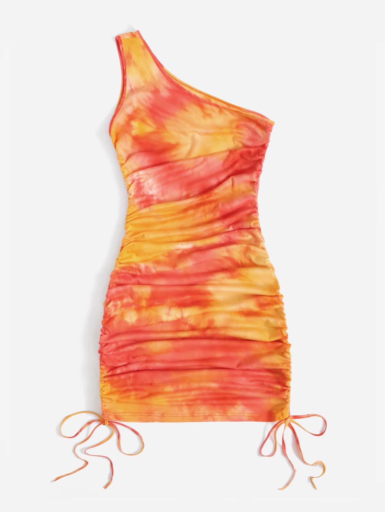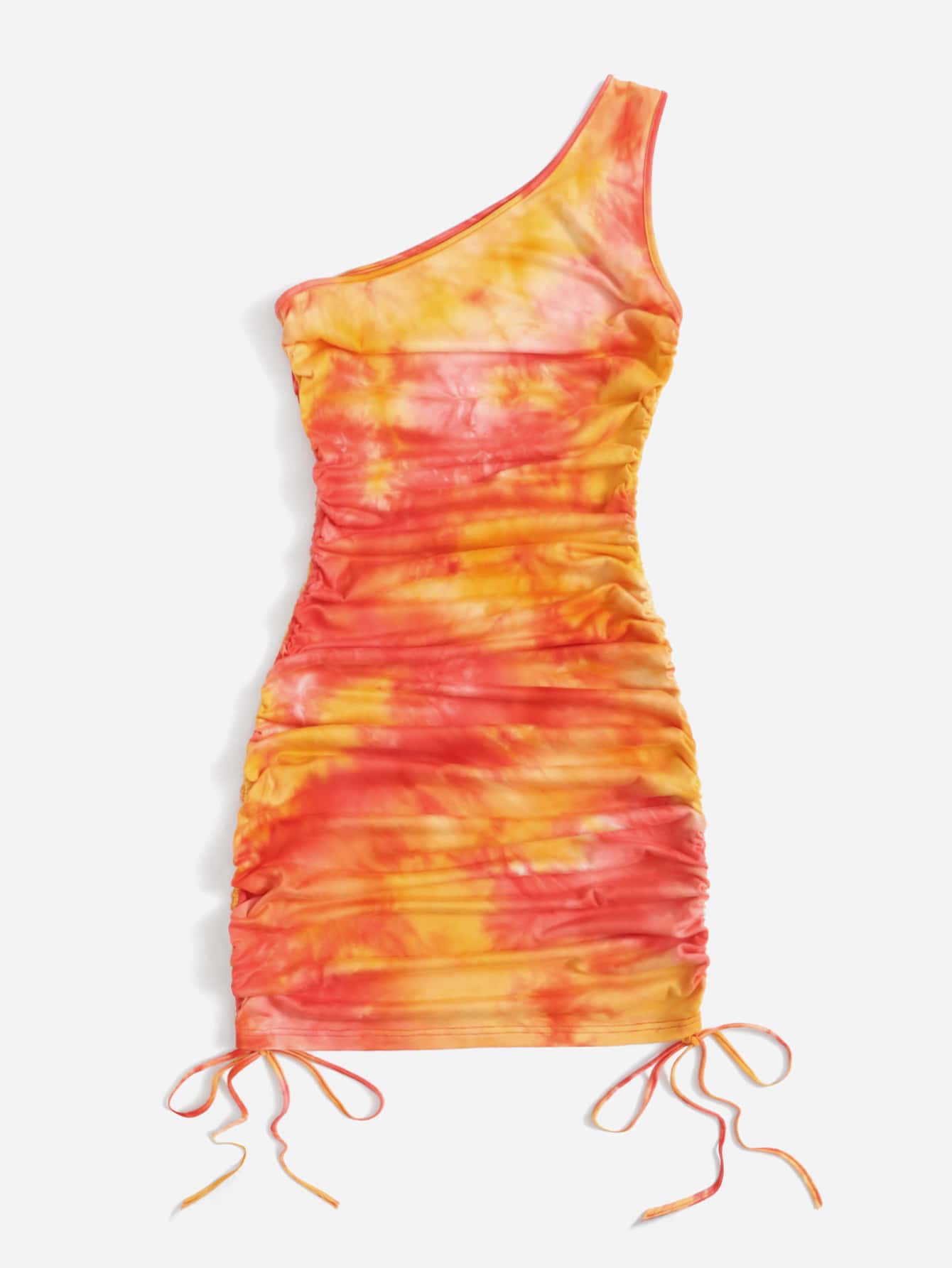 Robe asymétrique à cordon à ruché tie dye