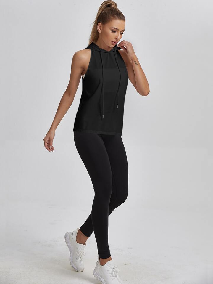 T-shirt de sport dos-nu à cordon à capuche