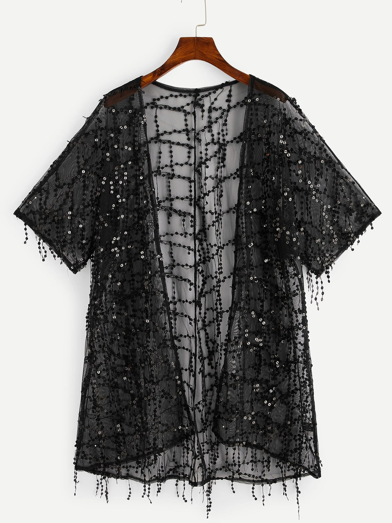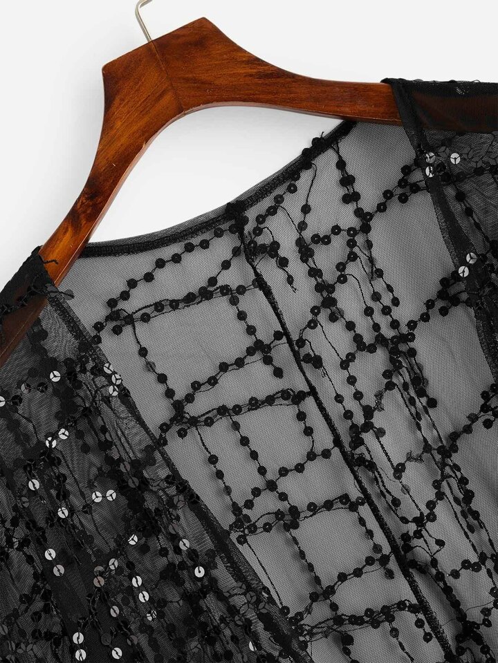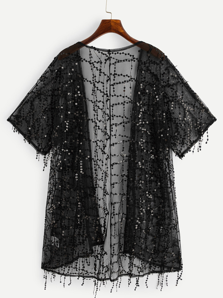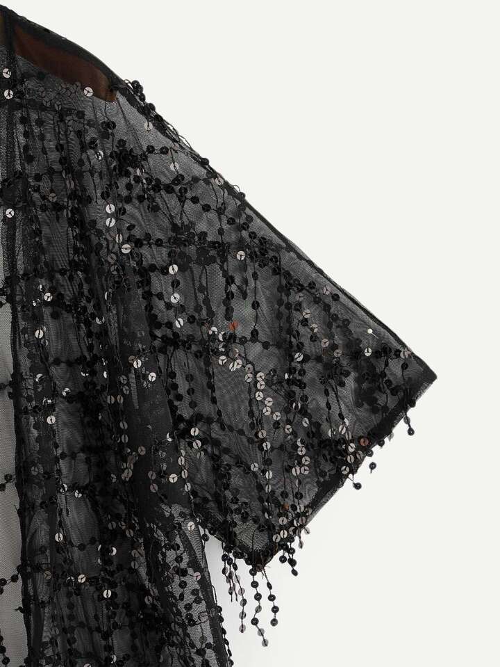 Kimono transparent avec paillettes et franges