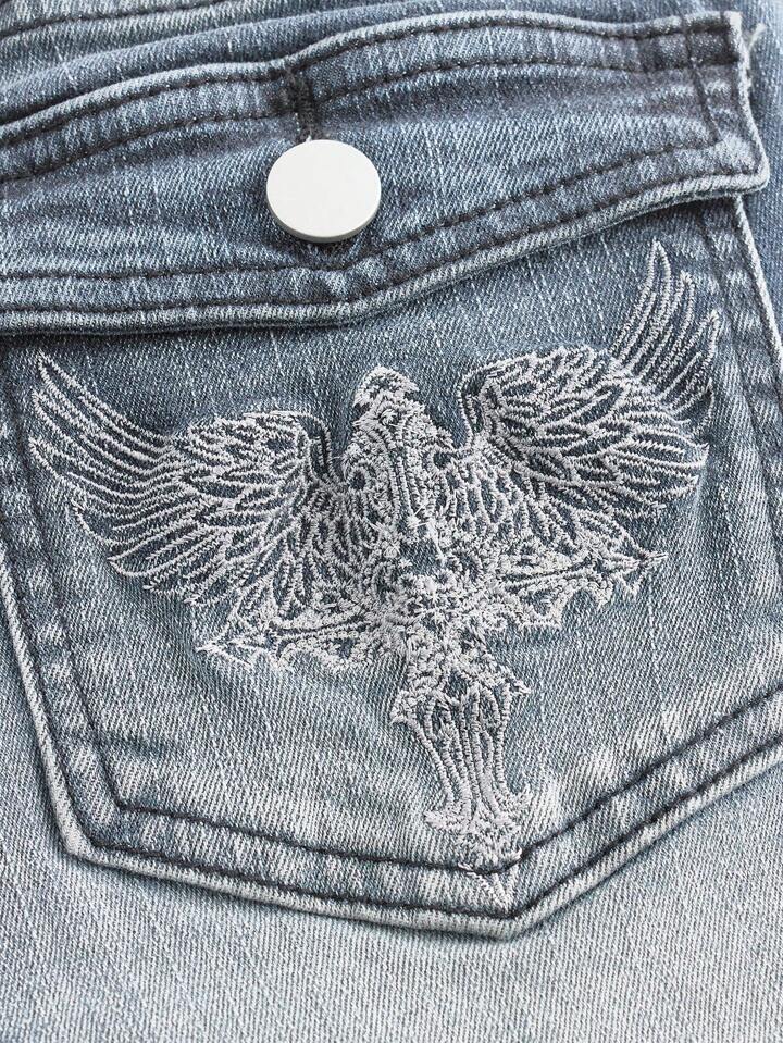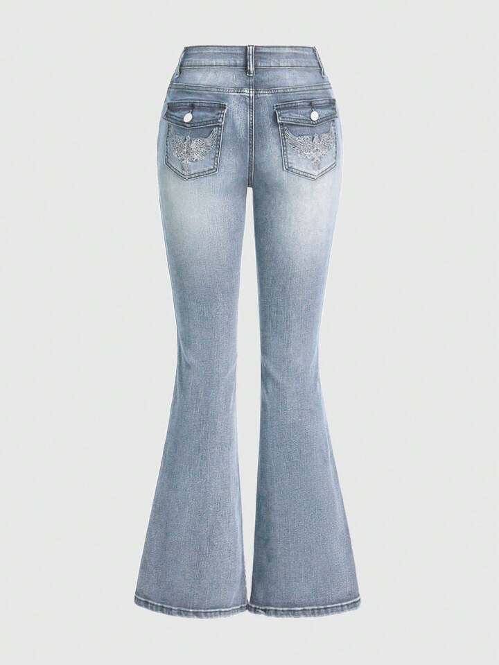 PETITE Jeans évasés slim à motif vintage brodé chic punk pour femmes