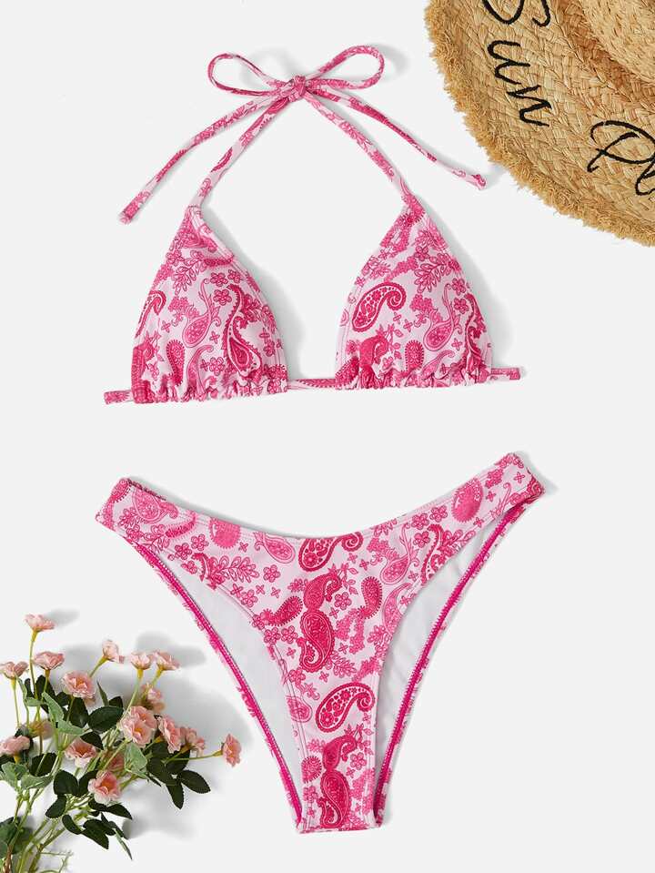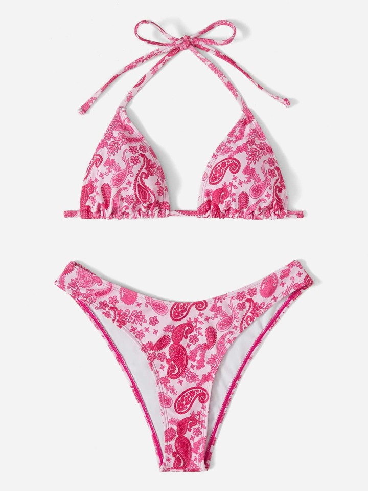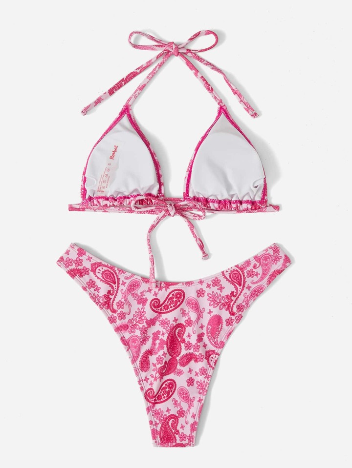 Bikini ras-du-cou paisley à coupe haute