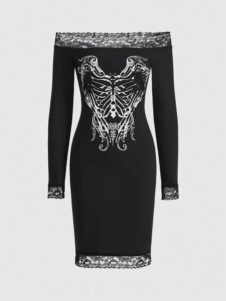Paola Cardenas e Oliveira Robe Ajustée En Dentelle Pour Femme Et Imprimé Crâne