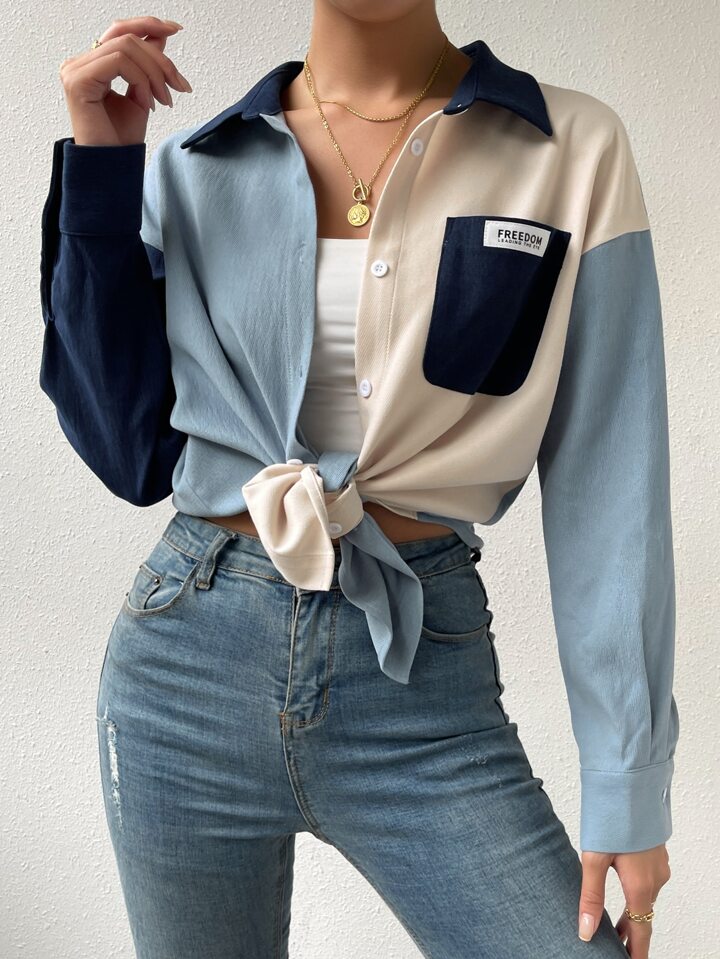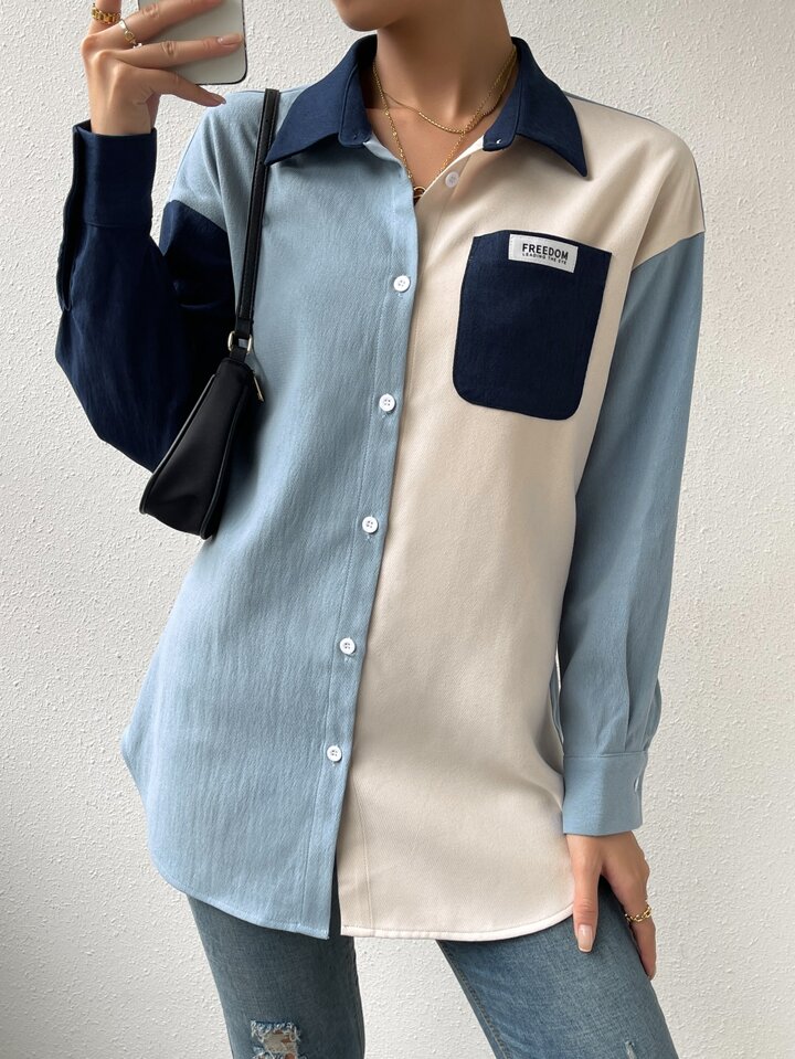 Chemise décontractée de base pour femmes à manches longues avec boutons et couleurs contrastées
